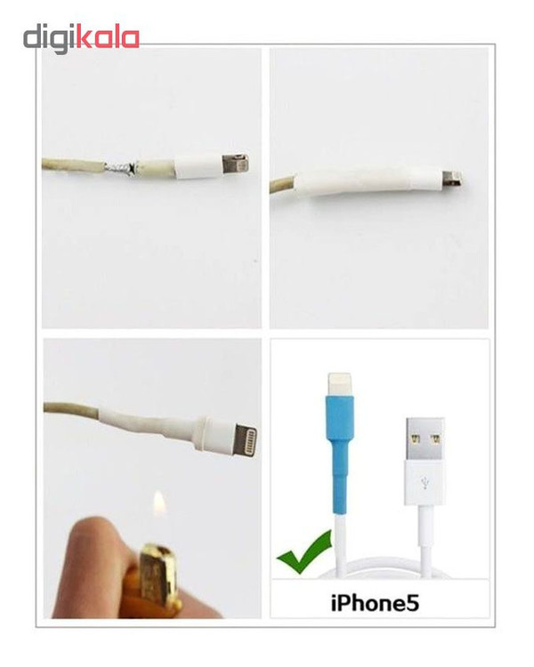 همانگونه که می دانیم تمامی کابل های آیفون از قسمتی که کانکتور و کابل به یکدیگرمتصل می شوند دچار پیچ خوردگی و پوسیدگی می شوند و این امر باعث خرابی کابل های آیفون می شود! با استفاده ازاین روکش کابل شما به راحتی می توانید از پوسیدگی و پیچ خوردن کابل آیفون خود جلوگیری نموده و عمر کابل های خود را افزایش دهید بدین ترتیب این قسمت کمتر دچار خمشدگی بیشازحد و کشیدگی میشود. در بستهی این محصول یک جفت از این محافظها وجود دارد و شما میتوانید از محل اتصال دو کانکتور محافظت کنید؛ ازاینرو برای دو عدد کابل مناسب است. برای استفاده از این محصول ابتدا کابل را طوری از داخل تیوب رد کنید که روی پوشش پلاستیکی کانکتور و حدود چند سانتیمتر از کابل را کاملا بپوشاند . وقتی جای تیوب را کاملاً تنظیم کردید سپس با استفاده ازحرارت سشوار یا شعله فندک از وسط تیوب شروع به گرم کردن کنید.(اگرازشعله فندک استفاده می کنید مراقب باشید ازفاصله دورباشد تا کابل دچار سوختگی نگردد) حرارت را به اندازه کافی روی تیوب نگه دارید تا خوب جمع شود.حالا می توانید مثل روز اول از شارژرتان استفاده کنید. این محصول ضمن اینکه بهراحتی نصب میشود دارای رنگهای متفاوتی هست البته باید توجه داشته باشید که این محافظ متناسب با ابعاد کابل اورجینال لایتنینگ اپل ساخته شده و قبل از تهیهی آن بهتر است، اندازهی کابل خود را بررسی کنید و در صورتی که ابعاد آن مشابه این کابل است، این محصول را برای کابل خود تهیه کنید. این محافظ کابل به افرادی که روی سلامت و نو ماندن لوازم دیجیتال خود حساس هستند، پیشنهاد میشود.