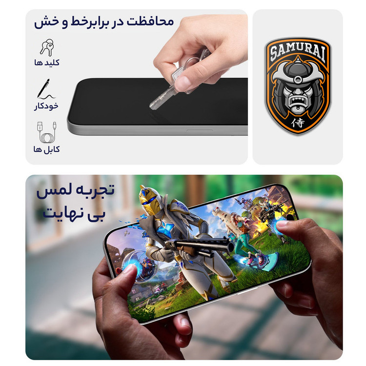 شیشه مقاوم ۹H - طراحی تمام صفحه و خمیده ۵D - فناوری ESD (تخلیه الکترواستاتیک) ( گلس آنتی استاتیک ) - وضوح شفاف و کیفیت بالا - ویژگی ضد اثر انگشت - طراحی فول چسب - حساسیت لمس بالا -