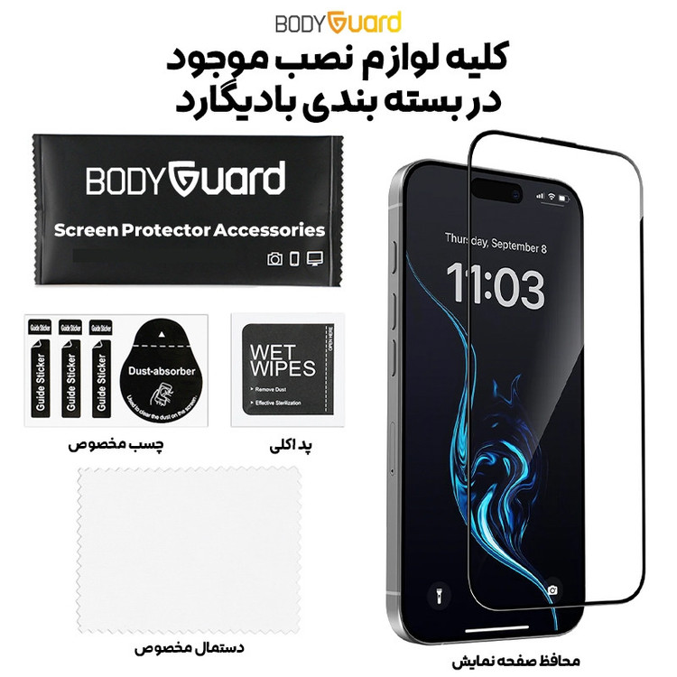 محافظ صفحه نمایش شیشه ای بادیگارد مدل FIP مناسب برای گوشی موبایل اپل iPhone 17