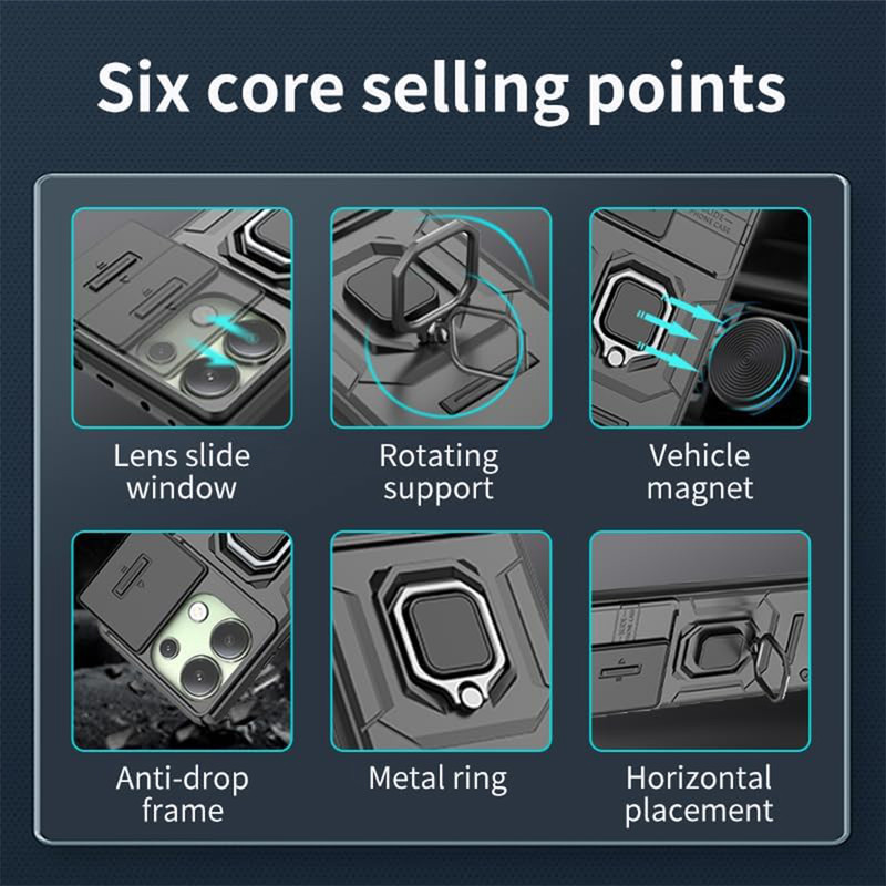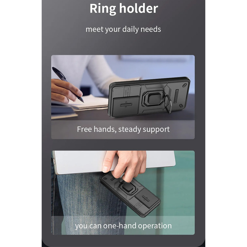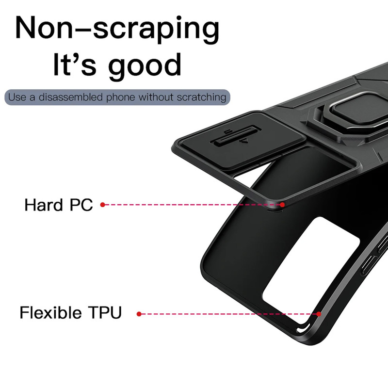 مقاوم در برابر ضربه , دسترسی آسان به درگاه ها , قابلیت تبدیل شدن به استند , لبه های برجسته برای محافظت صفحه نمایش , لبه های برجسته برای محافظت دوربین , مقاوم در برابر خط و خش