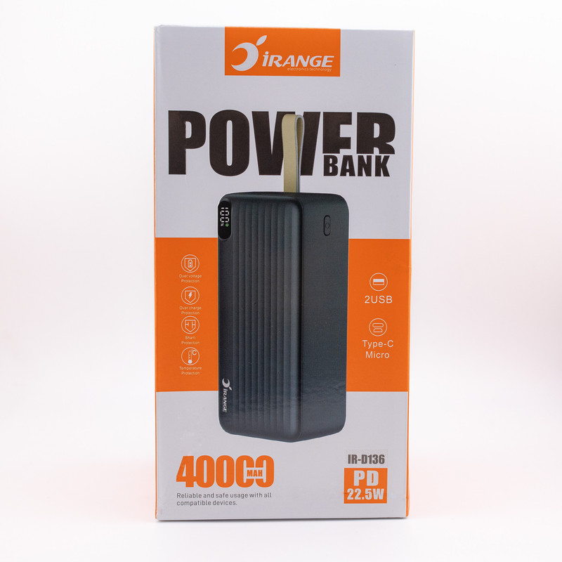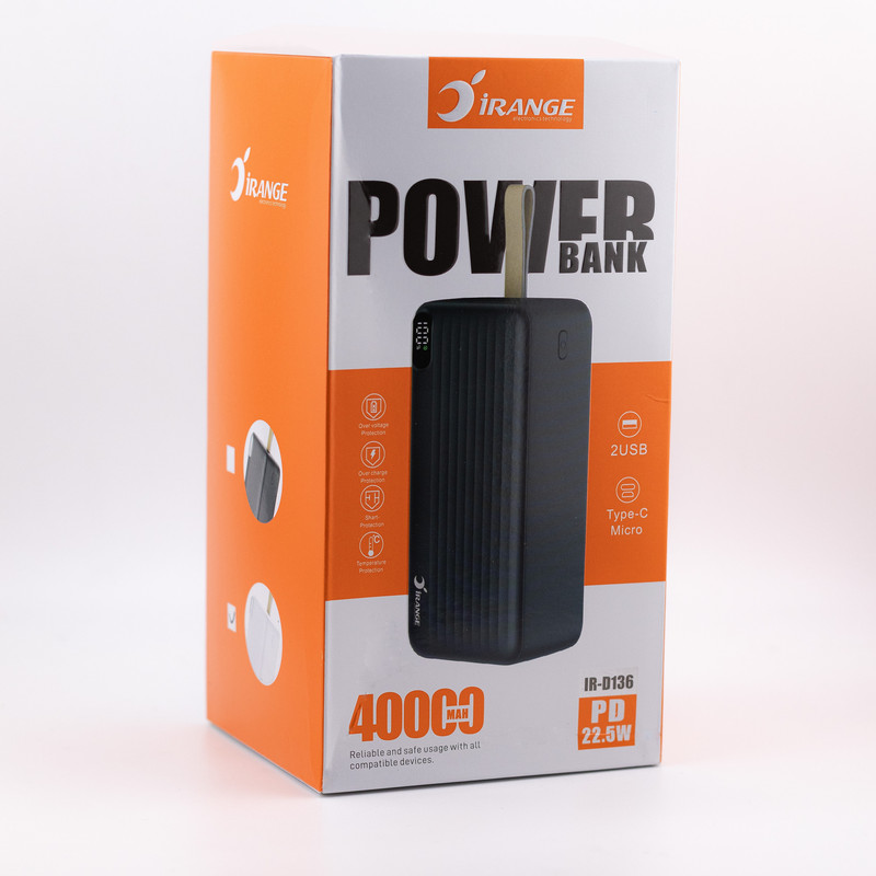 پاوربانک آیرنج مدل(D - 136) ظرفیت 40000 میلیآمپرساعت یکی از محصولات جذاب و کارآمد شرکت آیرنج است که با مشخصات فنی قابل توجه خود، امکان شارژ سریع و طولانی مدت انواع دستگاههای همراه را فراهم میکند. این پاوربانک مجهز به توان خروجی 22.5 وات بوده و از فناوریهای پیشرفتهای چون محافظت در برابر آسیبهای افت ولتاژ و جریان بهره میبرد. یکی از ویژگیهای این محصول، امکان نمایش میزان شارژ باتری به صورت درصدی است که به کاربران کمک میکند تا در هر زمان از وضعیت شارژ باتری آگاه باشند. همچنین آیرنج D-136 دارای 4 درگاه خروجی است که به افراد این امکان را میدهد تا به طور همزمان چندین دستگاه را شارژ کنند. این مدل 3 ورودی برای شارژ پاوربانک در اختیارتان قرار میدهد. که شامل ( microUSB ) و ( USB-C ) و Type-A برای شارژ شدن و دو کانکتور Type-A و USB-C و microUSB که میتواند چندین دستگاه را به طور همزمان شارژ کنند . از این پاوربانک میتوانید برای شارژ کردن تبلت خود هم استفاده کنید. ولتاژ ورودی برای این مدل 5.0 و 9.0 و 12 ولت و دارای ولتاژ خروجیهای مختلفی است که از جمله آنها میتوان به 5V/3A،9V/2.22A،12V/1.6A اشاره کرد. این ویژگی باعث میشود که شارژ دهی به دستگاههای مختلف با سرعت و کیفیت بالا انجام شود. پاوربانک آیرنج D-136 دارای پورت تایپ A با ولتاژ خروجیهای متنوع است : شامل 5V/3A ، 9V/2A ، 10V/2.25A ، 12V/1.5A .همچنین پشتیبانی از تکنولوژی USB Power Delivery ،است که سرعت شارژ دستگاههای متصل را به طور چشمگیری افزایش میدهد. همچنین ولتاژ خروجی ثابت 5 ولت پاور بانک آیرنج D - 136است، سازگاری گستردهای با انواع دستگاههای قابل حمل ایجاد میکند. همچنین، ساخت بدنه پاوربانک از پلاستیک باعث شده است در عین حال مقاوم در برابر ضربه و خط و خش بوده و برای استفاده در سفرها و فعالیتهای روزمره گزینه ایدهآلی به شمار آید.
