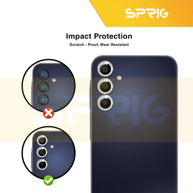 محافظ لنز نگین دار دوربین رینگی اسپریگ با در نظر گرفتن دو جنبه ی زیبایی و حفاظت، یک محافظ تمام عیار برای لنز دوربین میباشد. این محافظ برای دوربین اصلی طراحی شده است تا آن را از خط و خش، شکستگی و آسیب های احتمالی دیگر حفظ کند و مانع از نشستن هر گونه لک و چربی روی لنز و در نتیجه افت کیفیت دوربین شما می شود. با وجود نصب آسانی که دارد میتوانید به راحتی آن را روی دوربین گوشی خود نصب کنید و نگران ماندن رد این گلس روی دوربین به هنگام جدا کردن آن نباشید چراکه هیچ ردی روی شیشه دوربین برجای نمی گذارد و پس از جدا کردن آن، دوربین مثل روز اولش خواهد بود. در نهایت اینکه این محافظ لنز تاثیری روی لنز دوربین و کیفیت تصاویر یا فیلم های ثبت شده ندارد و می توانید با خیال راحت از آن استفاده کنید.
