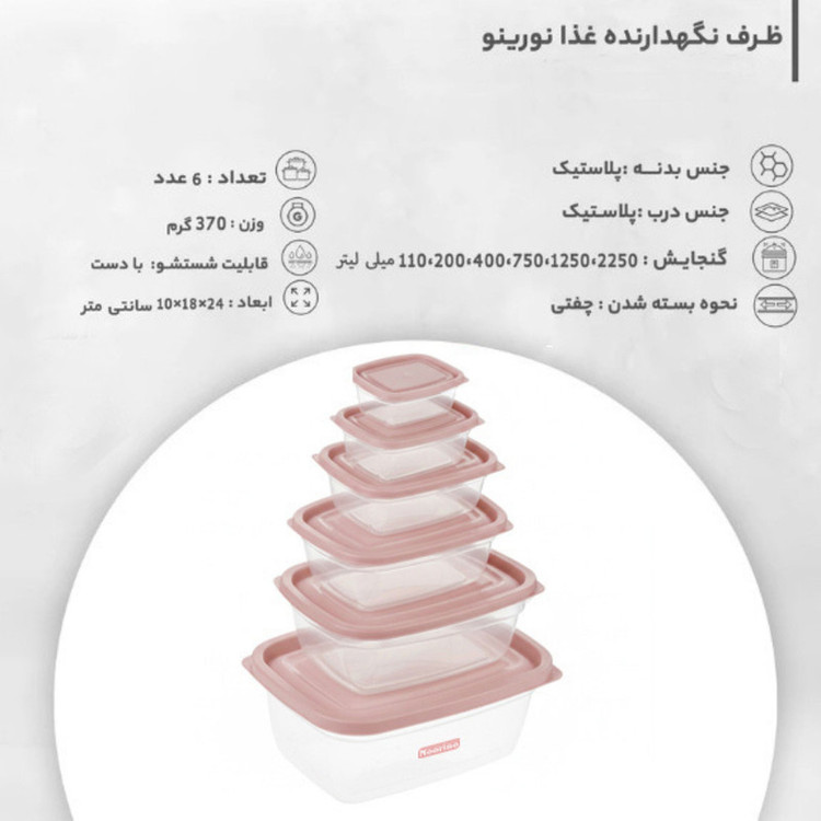 ظرف نگهدارنده غذا 12 پارچه نورینو مدل آیرینا