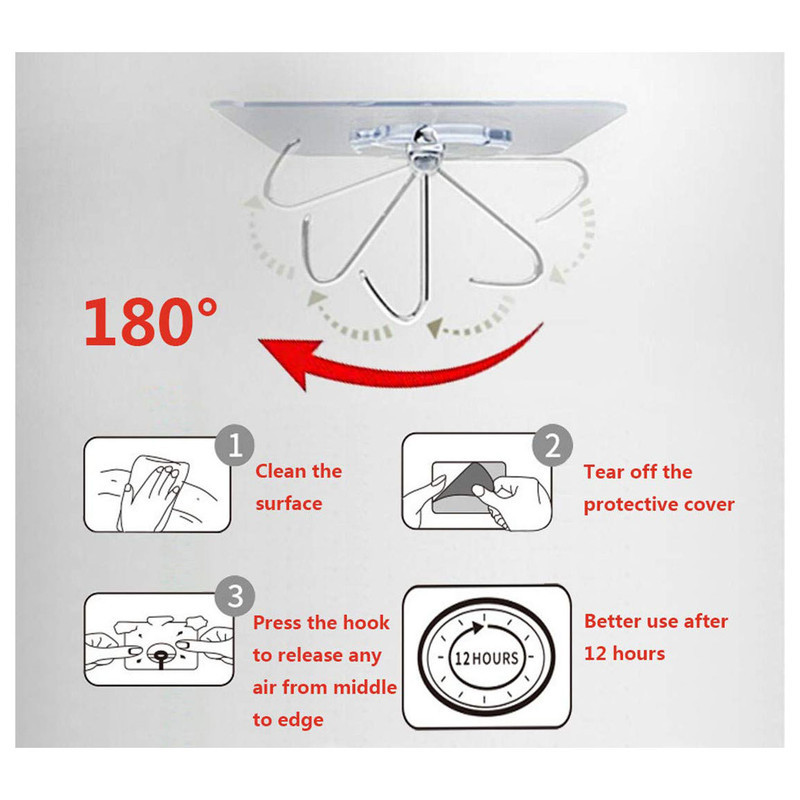 قلاب این گیره آویز، فلزی بوده و بدنهی آن از جنس پلاستیک ABS ساخته شده است و با چسبی که در پشت دارد به سطوحی مانند: سرامیک، ام دی اف، درهای چوبی، پلانک و فلز ضد زنگ، متصل میشود. توجه داشته باشید؛ این محصول برای سطوحی مثل: دیوار رنگ شده، کاغذ دیواری و دیوارهای ضعیفی که بعضاً پوسته پوسته میشوند، مناسب نیست. همچنین قلاب به دلیل قابلیت چرخش قلاب 360 درجه آن، این امکان را به شما میدهد تا آن را در جهات مختلف، متناسب با نیازتان (حتی به صورت عمودی و روی سقف) نصب کنید.
