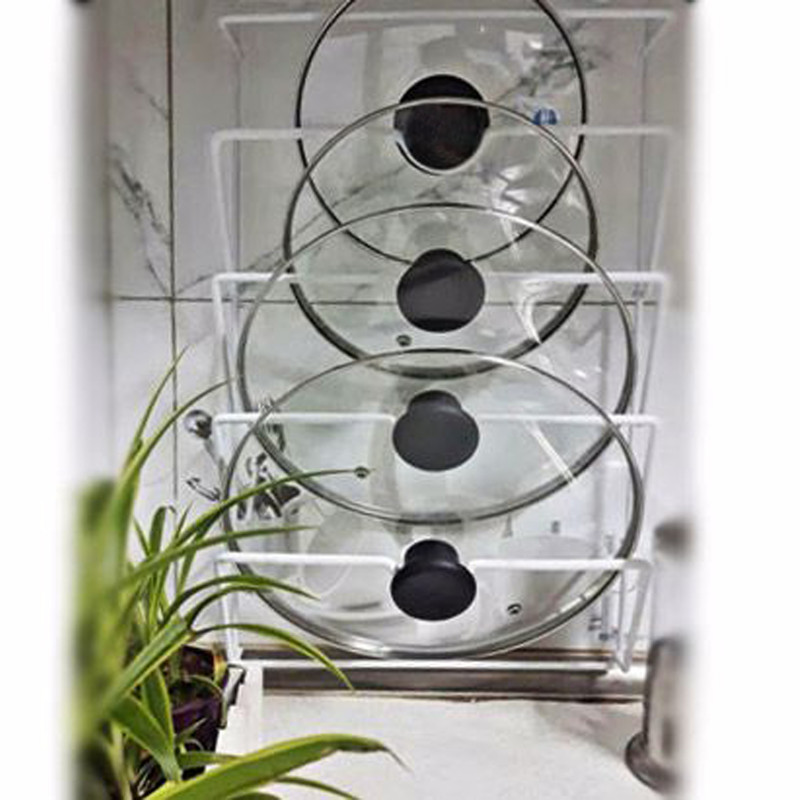 نگهدارنده درب قابلمه مناسب برای انواع درب قابلمه ها با اندازه های متفاوت می باشد.با خرید استند درب قابلمه شما به راحتی بعد از هر بار پخت و پز می توانید درب قابلمه ها را بر روی آن قرار بدهید تا از هر نوع آسیب احتمالی در امان بمانند.ابعاد طراحی شده به صورت کلی این محصول 50 × 30 سانتی متر است لذا فضای زیادی از محیط آشپزخانه شما را اشغال نخواهد کرد.دو عدد گیره در بالای محصول تعبیه شده است تا به وسیله آن به راحتی بتوانید استند را آویزان کنید.تعداد محفظه در نظر گرفته شده برای نگهدارنده درب قابلمه، 4 عدد با اندازه های مختلف می باشد.از دیگر ویژگی های این لوازم آشپزخانه می توان به وزن سبک، حمل و نصب آسان، قابلیت شست و شو راحت اشاره نمود.در هر طبقه یک قسمت به صورت خمیده تعبیه شده تا دستگیره درب قابلمه در آن قرار بگیرد و مانع از حرکت اضافی آن بشود.