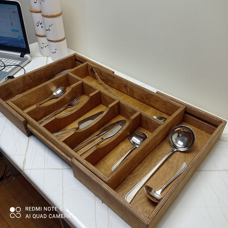 این جا قاشقی ساخته شده از چوب وارداتی پلی وود به ضخامت 12 میل است که مقاومت بالایی دارا می باشد و از قابلیت ضد آب بودن دارا می باشد .این استند به صورت 3 تکه کشویی می باشد و برای هر کشو کابینت با تقریبا هر سایزی مناسب می باشد سایز بسته شده این کار 41.5 x 50 می باشد که در صورت باز شدن به بازه اندازهه 41.5x90 میرسد