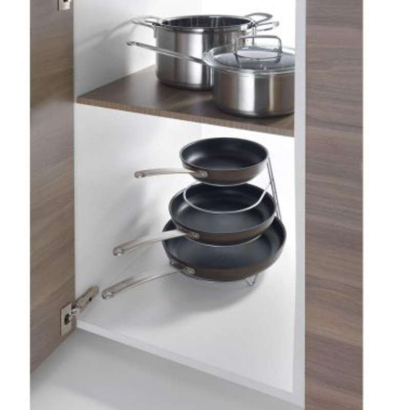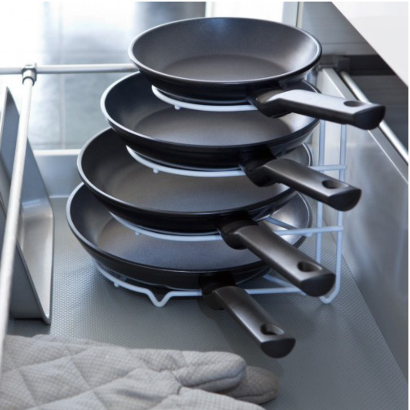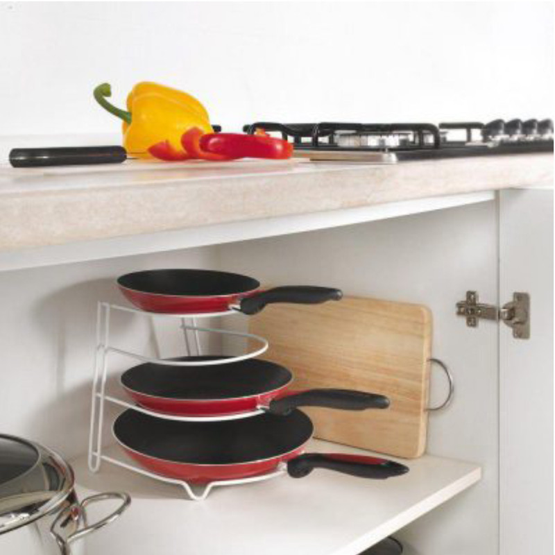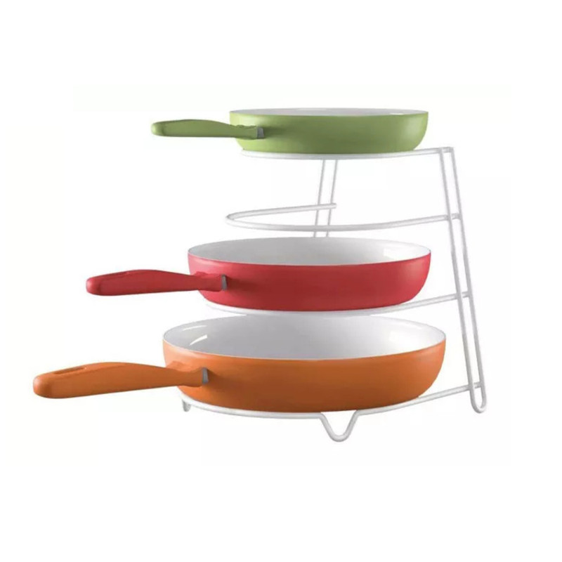طبقاتی بودن استند تابه رومیزی به شما کمک می کند تا ظروف را به صورت عمودی با فاصله مشخص از یکدیگر قرار دهید ، بدون اینکه برخوردی با یکدیگر داشته باشند و یا اینکه برای استفاده از آنها نیاز به جابه جایی دیگر ظروف باشد . دسترسی سریع و آسان در هنگام نیاز را نیز به خصوصیات بارز استند طبقاتی تابه اضافه کنید . از این محصول به دلیل ماهیت رومیزی بودنش می توانید داخل و یا روی کابینت ، روی سینک ، کنار اجاق گاز و ... استفاده کنید . بهره برداری از نگهدارنده ماهیتابه رومیزی تنها محدود به تابه نمی شود و از آن می توانید برای نگهداری دیگر ظروف نظیر بشقاب و درب قابلمه نیز استفاده کنید .