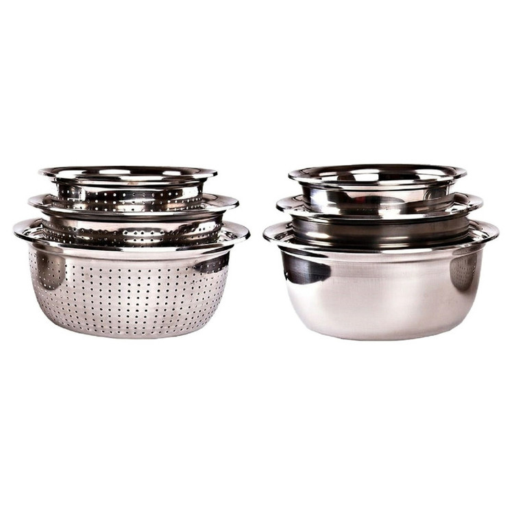 این مجموعه شامل 3عدد آبکش به سایزهای 20,26,32 سانتی متری و 3عدد کاسه(لگن آشپزخانه) به سایزهای 20,26,32 سانتی متر می باشد.