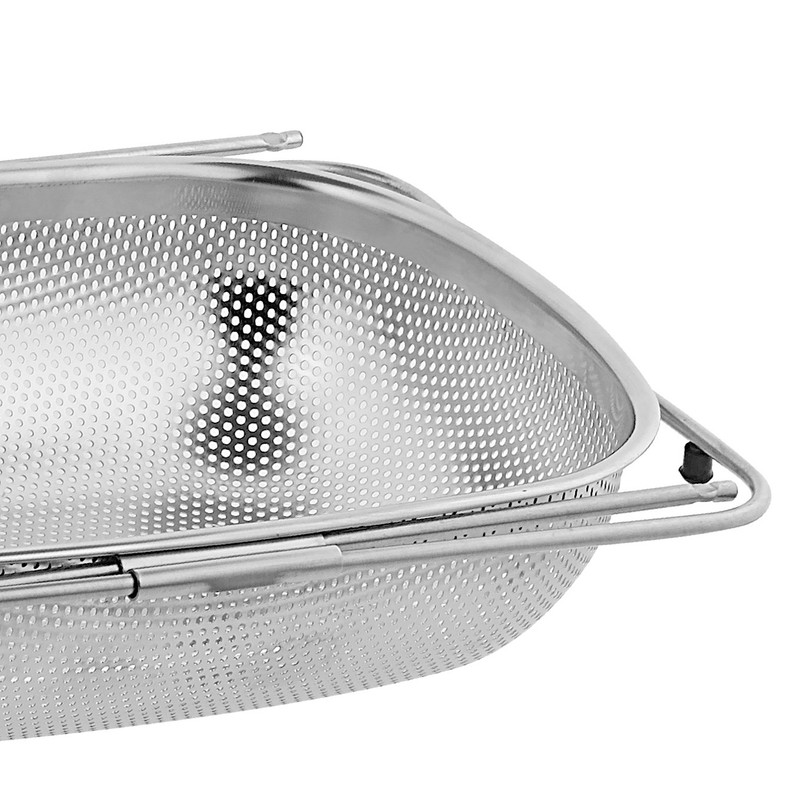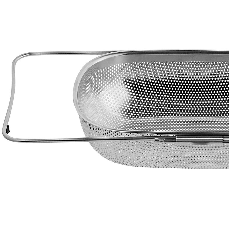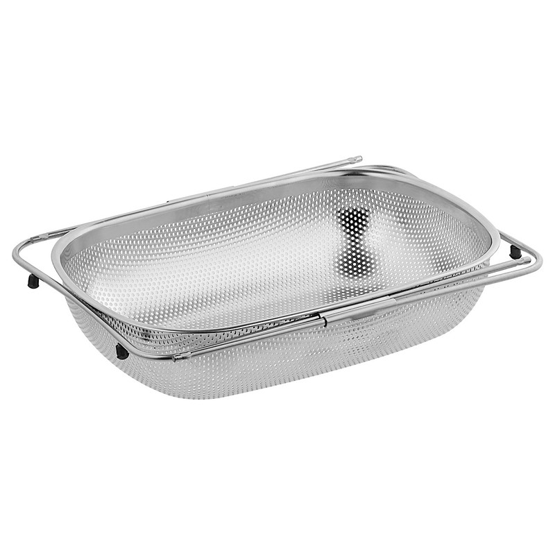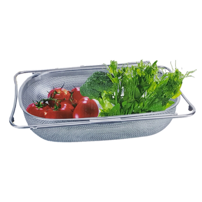 آبکش سینک استیل کد 4080” از جنس استیل ضد زنگ و مقاوم است. این آبکش مناسب شستشوی میوه و سبزیجات، آبکشی برنج و … میباشد. این آبکش با طراحی خاصی که دارد، روی دو طرف سینک قرار می گیرد و دست های شما را آزاد خواهد گذاشت. بدنه این محصول از ورق استیل ضد زنگ پانچ شده و پایه ها از مفتول استیل و بسیار با دوام هستند.