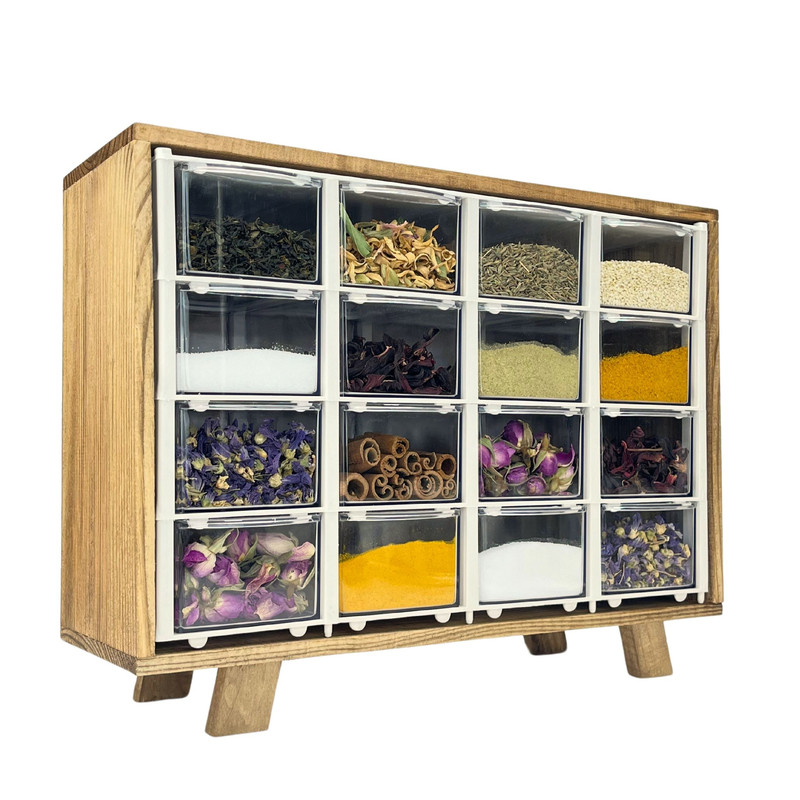 این جا ادویه چوبی 16 کشو، هدیهای است برای خودتان و یا کسانی که به دنبال نظم و زیبایی در آشپزخانه خود هستند. این محصول با طراحی مدرن و کارآمد، تمامی نیازهای شما برای نگهداری انواع ادویهجات و گیاهان دارویی را برطرف میکند.