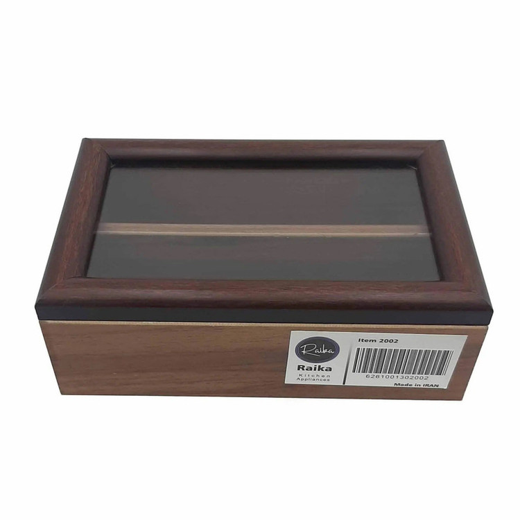 جای قاشق چنگال چوبی رایکا مدل دوخانه به همراه درب شیشه ای