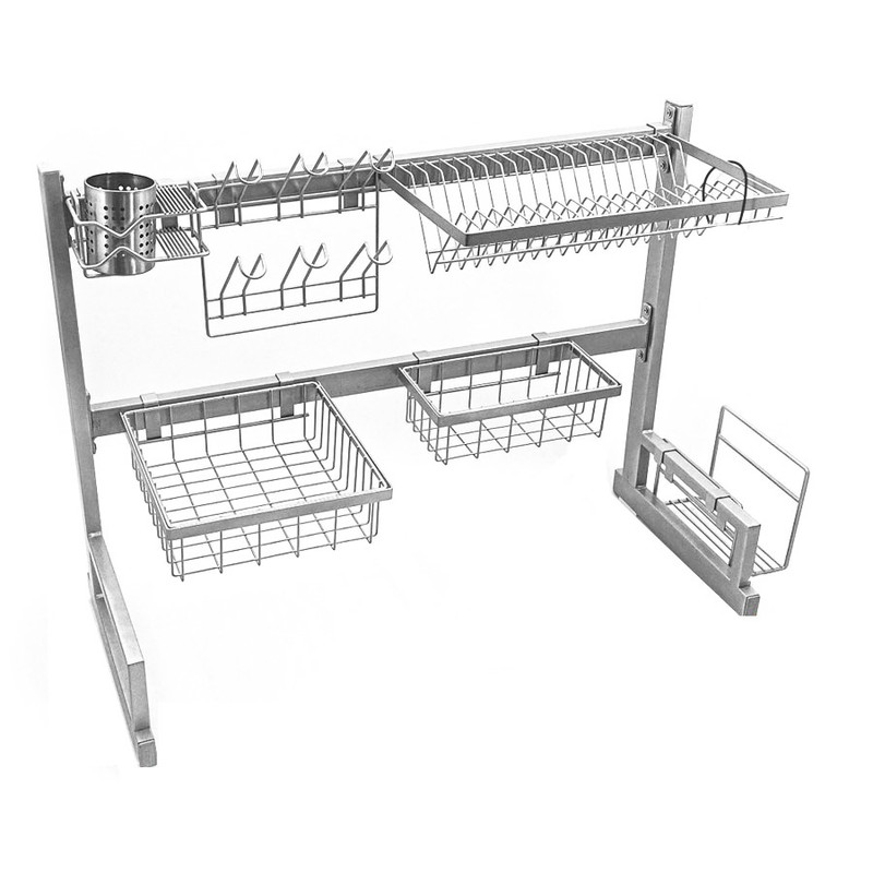 این محصول از یک فریم فلزی محکم و سخت آلومینیومی ساخته شده است که به طور همزمان بر روی این فریم تجهیزات مختلف از قبیل جای سینی، جای ظروف، جای اسکاج، جای آبکشی میوه جات، جا قاشقی و جا لیوانی نصب شده است و محصولی چند منظوره می باشد که نیاز شما را از چند نظر با قیمتی نسبتا مناسب برطرف می سازد.