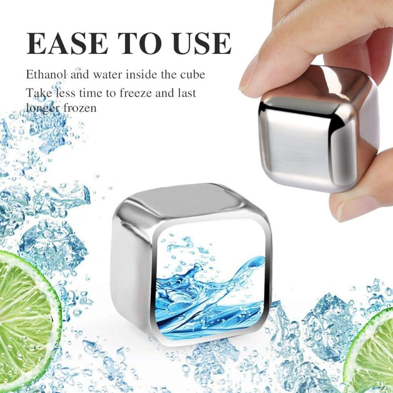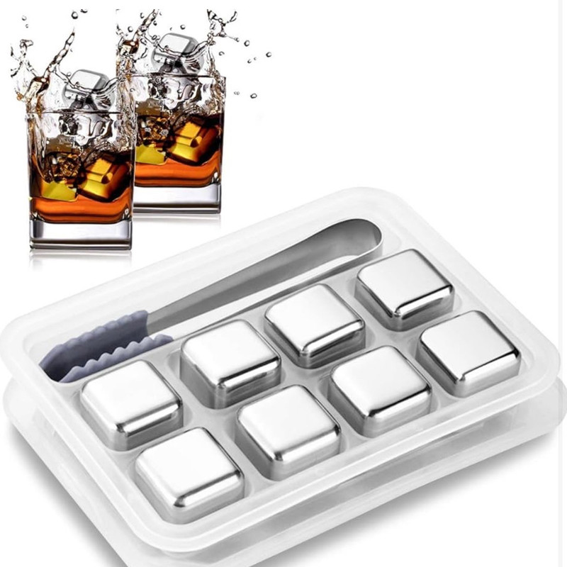 یخ های مکعبی استیل بروز ترین طراحی و جدید ترین نوع ابزار برای خنک نمودن انواع مایعات و نوشیدنی می باشد،یخ های مکعبی نمونه های کوچکی با جنس استیل ضد زنگ می باشند که با قرار گرفتن در یخچال به سرعت سرد شده و هنگامی که آن را داخل مایعات بیاندازید سریعا آن را خنک کرده و یک نوشیدنی خنک گوارا تحویل شما می دهد.یخ های استیل به گونه ای طراحی و تولید شده اند که در زمانی تقریبا 1 ساعت درون یخچال کاملا سرد و یخ می شوند و هنگامی که آن را داخل لیوان نوشیدنی انداختید در مدت زمان 3 دقیقه نوشیدنی خنک و گوارایی به شما تحویل می دهند.بزرگترین ویژگی و مزیتی که این یخ ها دارند این است که هیچ بوی نامطبوع و مزه ای در نوشیدنی شما ایجاد نمی کنند و کاملا بدون بو و مزه می باشند. این تکه یخ های استیل با کارایی فوق العاده ای که دارند می توانند بهترین جایگزین یخ های آبی شده و در مصرف و صرفه جویی آب نیز کمک شایانی داشته باشند.با داشتن این تکه یخ های استیل دیگر خیالتان برای همیشه از داشتن نوشیدنی سرد و گوارا در هر زمان راحت می باشد. استفاده از یخ های قالبی و حتی یخ های ساخته شده توسط یخچال ساید، به این دلیل که یخ در نوشیدنی ذوب میگردد سبب بی مزه شدن نوشیدنی میشود، ولی با استفاده از این قالب یخ استیل مکعبی هيچ بوي نامطبوع و مزه اي در نوشيدني شما ايجاد نمي شود، زیرا به هیچ عنوان مایع درون قالب یخ با نوشیدنی در تماس نیست .
