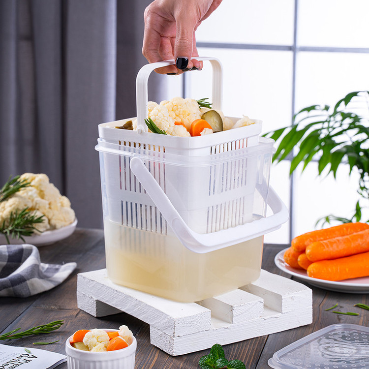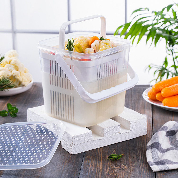 یک ظرف نگهدارنده به همراه یک سبد آبکش و یک در از جنس پلی پروپیلن به گنجایش داخلی 2.750 لیتر، وزن 179 گرم و ابعاد 16 × 16.7 × 16.2 سانتیمتر - BPA Free - قابل بازیافت - دارای تاییدیه انجمن نانو - آنتی باکتریال - ضد گرد و غبار