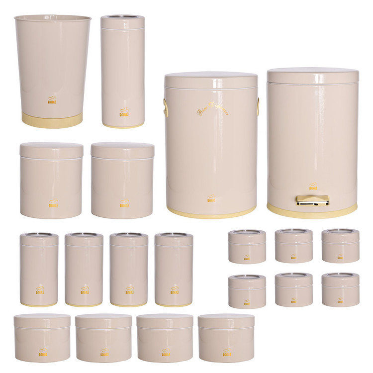 ۱ عدد سطل زباله ( استفاده از سیستم لولای آرام بند جهت بسته شدن درب بدون صدا. ) - ۱ عدد ظرف برنج بدون پیمانه - ۱ عدد سطل زباله مخروطی - ۱ عدد بانکه ماکارونی - ۴ عدد بانکه حبوبات کوچک - ۲ عدد بانکه قند و شکر - ۴ عدد بانکه حبوبات متوسط - ۶ عدد جا ادویه