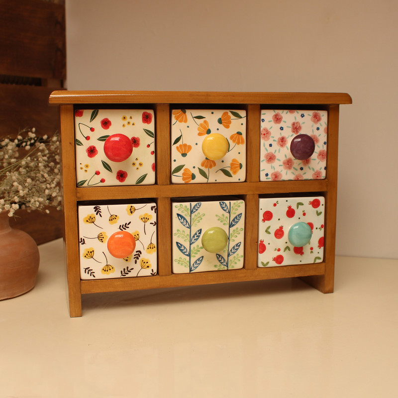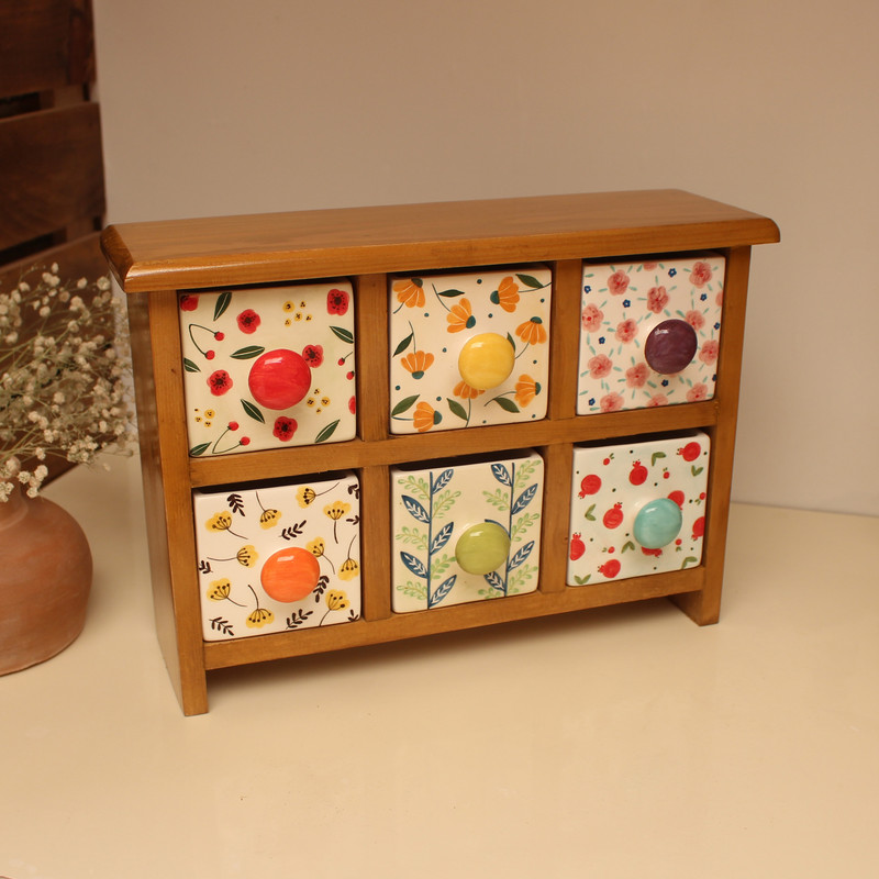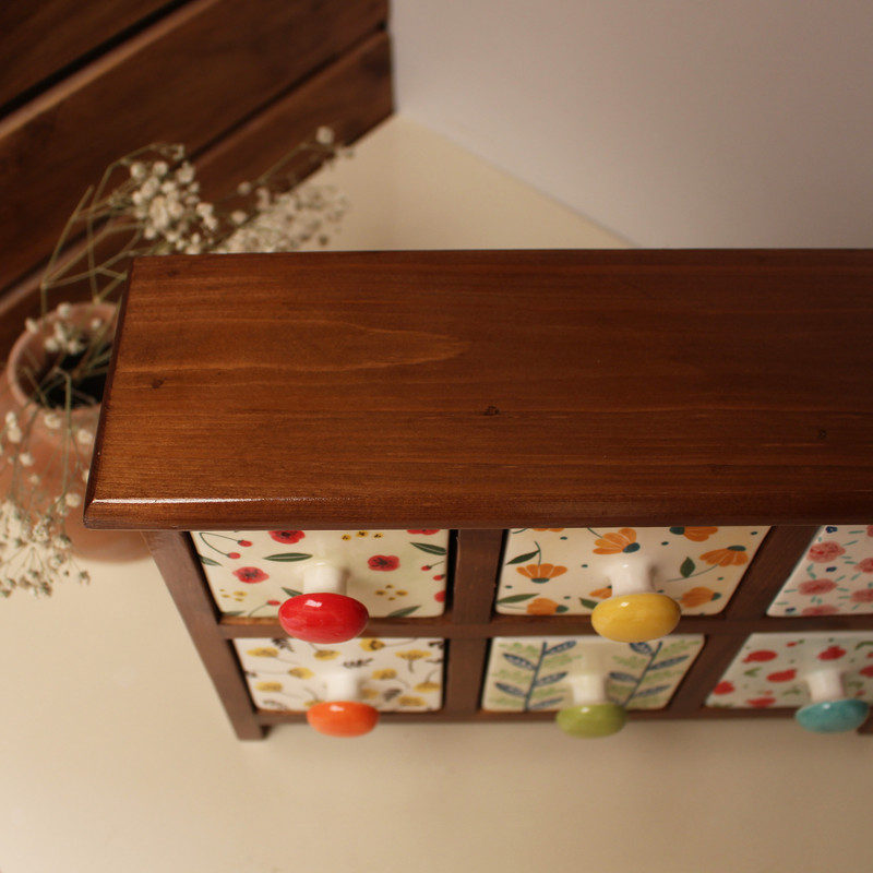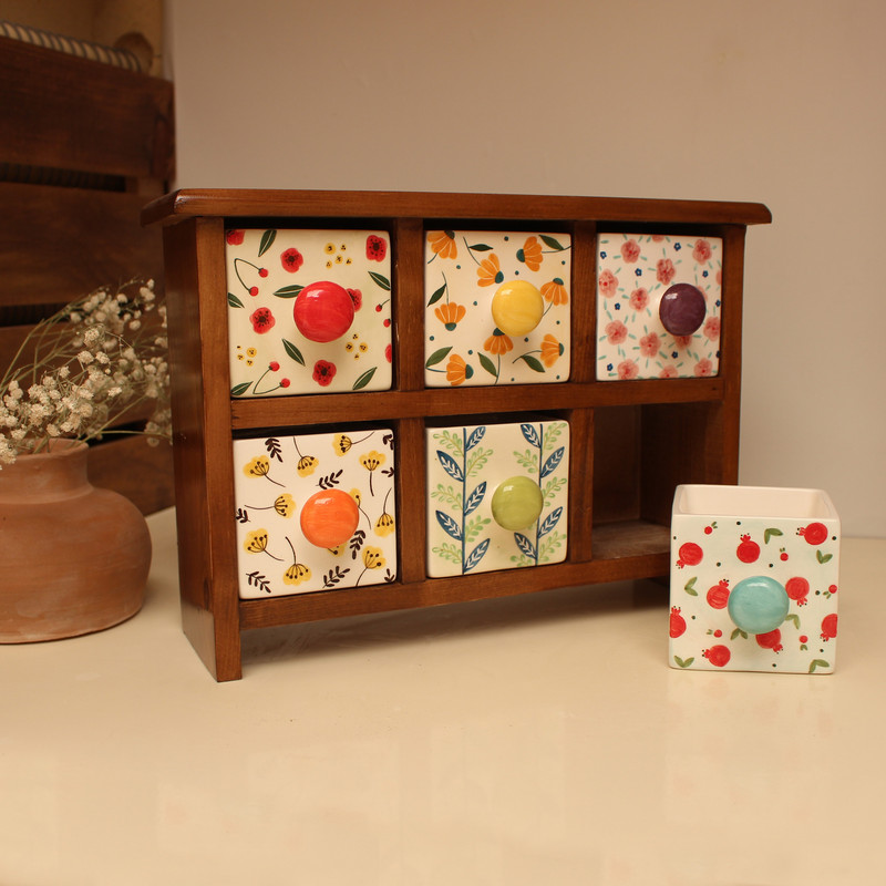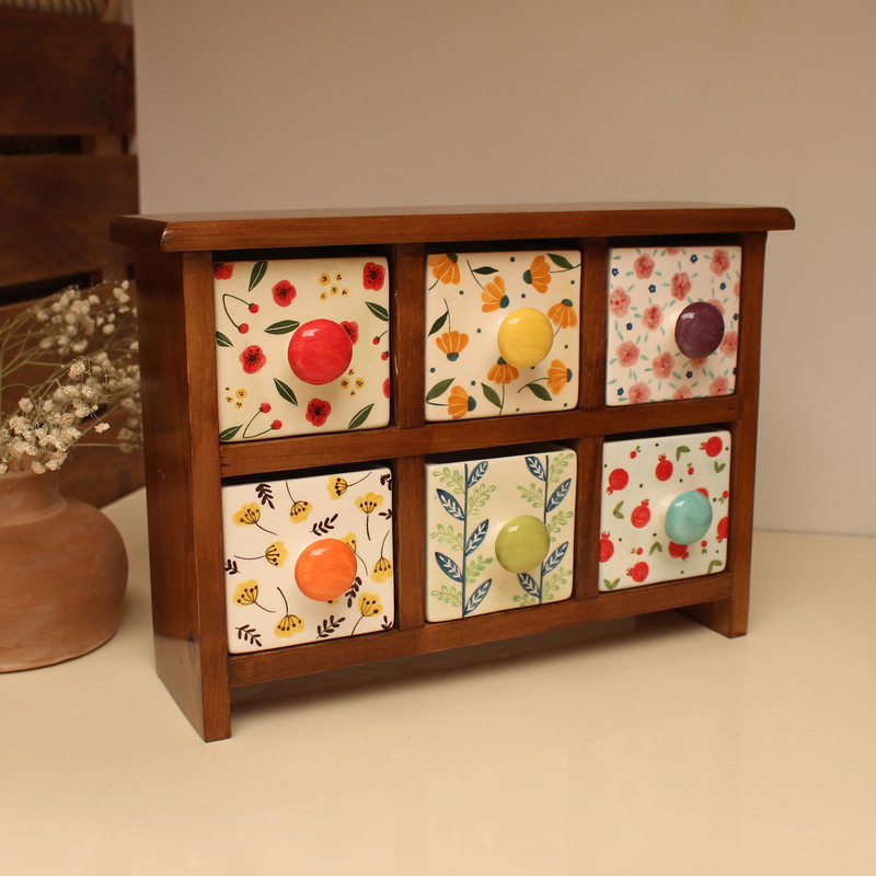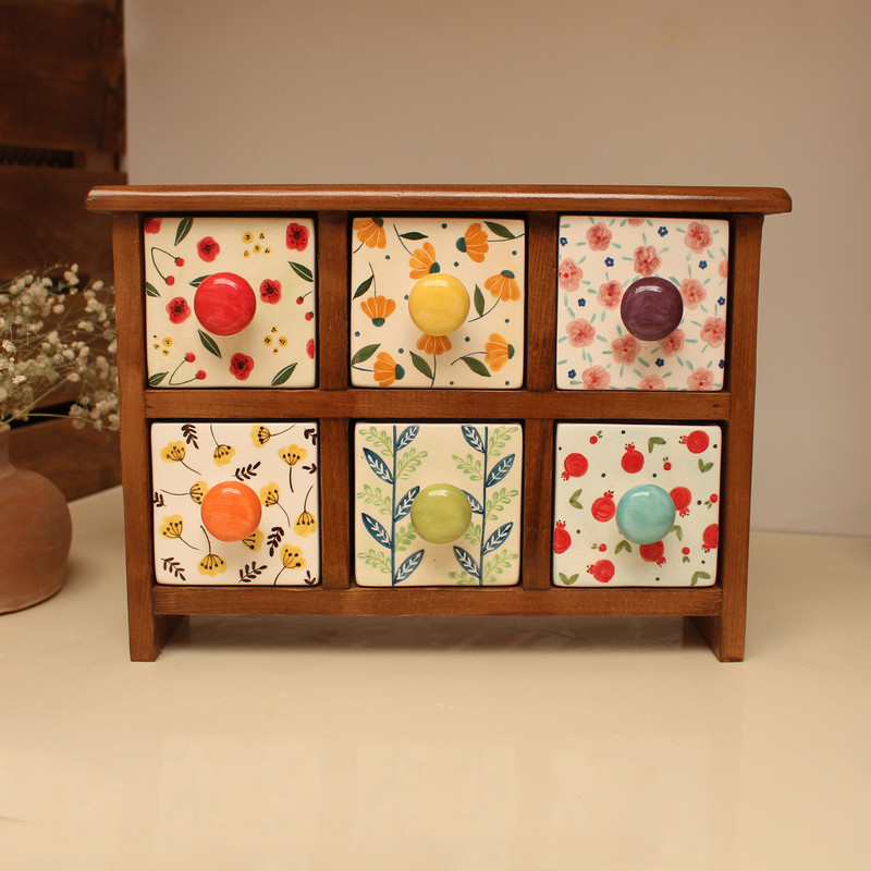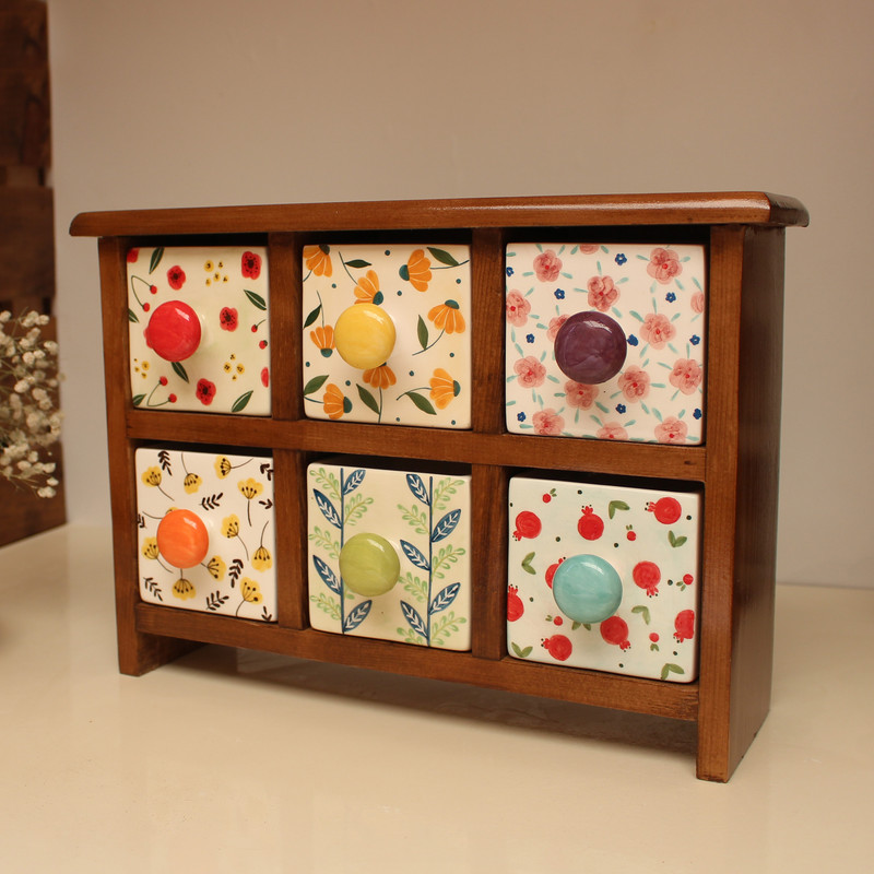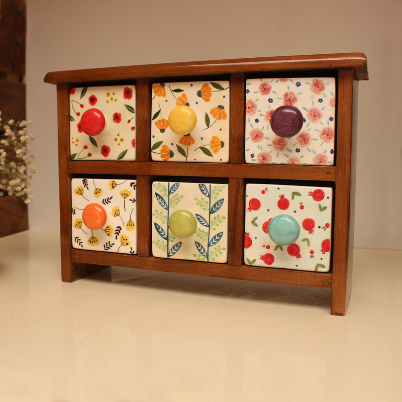 سایر توضیحات : بسته بندی اختصاصی ابعاد هر کشو 8x8x8 سانتی متر نقاشی با دست و کاملا دست ساز باکس چوبی از جنس وارداتی درجه یک ساخته شده از مرغوبترین مواد اولیه موجود وجود اختلاف رنگ جزیی چوب به دلیل ساختار طبیعی چوب
