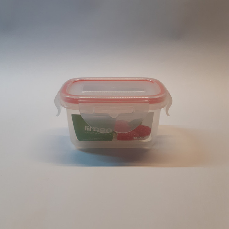 قابلیت استفاده در مایکروویو (بدون درب در مایکروویو قرار بگیرد) درب اورینگ دار و قفل دار مناسب نگه داری مواد غذایی و دیگر موارد حجم ظرف 180 میلی لیتر است ابعاد ظرف : طول : 10.5 سانتی متر عرض : 7.5 سانتی متر ارتفاع : 5.5 سانتی متر