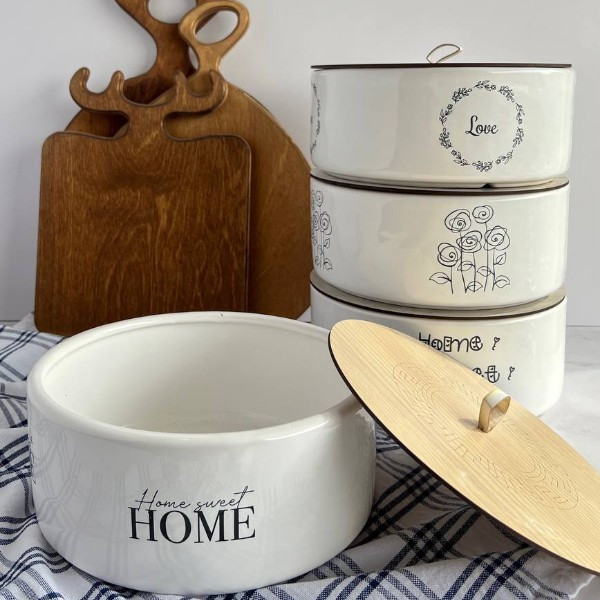 سایر توضیحات : ظرف نان و کیک و... خیلی شیک و کاربردی.قطر 25ارتفاع 10cm.چاپ ثابت و بدنه قابل شستشو با چاپ ثابت.تک کارتن حتی قابل هدیه و جهیزیه