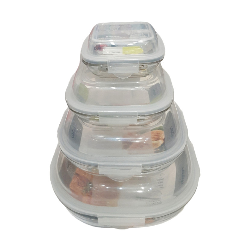 . ست ظرف شیشه ای لیمون کد 2049 مجموعه 4 عددی از جنس شیشه ی حرارت دیده و درجه یک تهیه شده است و به همین دلیل برای نگهداری از انواع غذا مناسب می باشد. با به کارگیری این محصول می توانید انواع غذا را برای مدت زمان طولانی تری نگهداری کنید و با پلمپ کردن درب آن احتمال ورود هیچگونه ذره و آلودگی به درون مواد غذایی وجود نخواهد داشت.