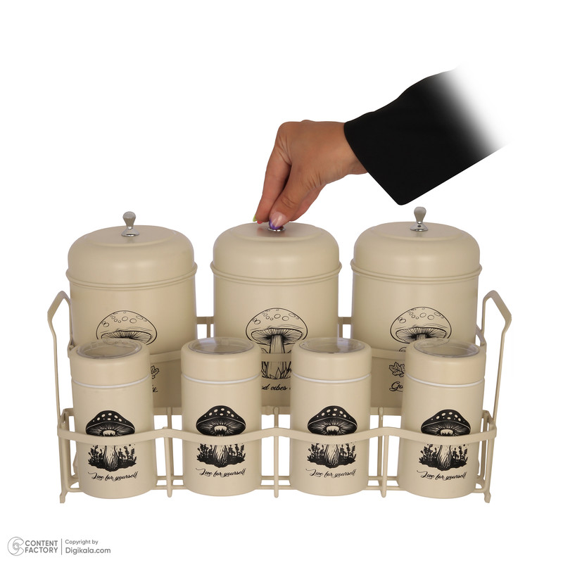 سایر توضیحات : - دارای 4 عدد جای ادویه به ابعاد 7×11×7 سانتی متر - دارای 3 عدد جای قهوه شکر و چای به ابعاد 12×17×12 سانتی متر