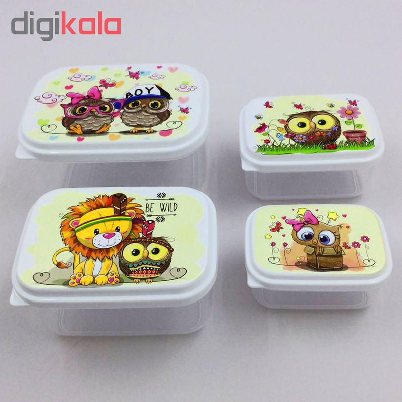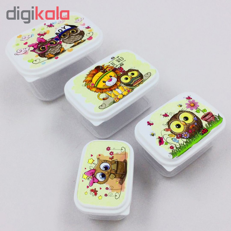 مجموعه 4 عددی ظرف نگهدارنده زیبا همراه طرح کارتونی روی درب و در چهار سایز مختلف و از این محصول برای نگهداری غذا میتوان استفاده کرد و قابل استفاده در فریزر، مایکروفر می باشد . همچنین قابلیت شستشو با ماشین ظرفشویی و دست را دارد.