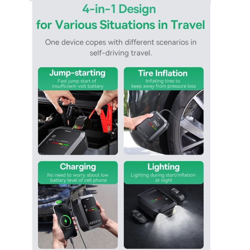 جامپ استارتر / تنظیم باد لاستیک / چراغ قوه / پاوربانک گوشی و لپتاب