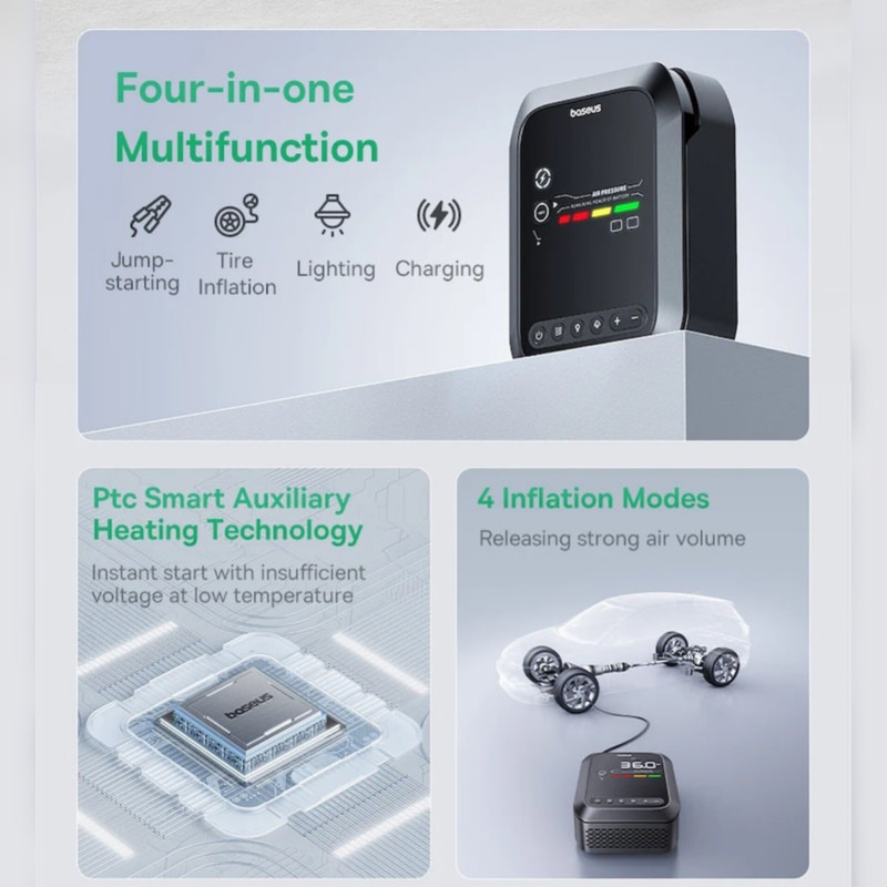 جامپ استارتر / تنظیم باد لاستیک / چراغ قوه / پاوربانک گوشی و لپتاب