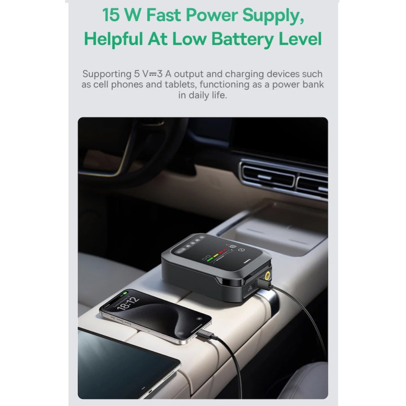 روش استفاده: جامپ استارتر / تنظیم باد لاستیک / چراغ قوه / پاوربانک گوشی و لپتاب