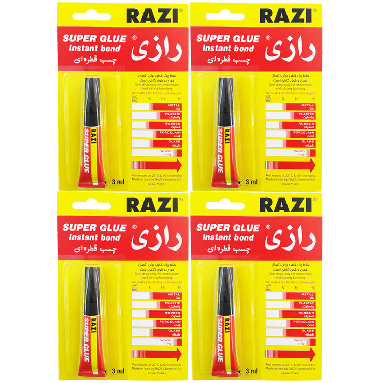 چسب قطره ای رازی مدل Super Glue حجم 3 میلی لیتر بسته 4 عددی