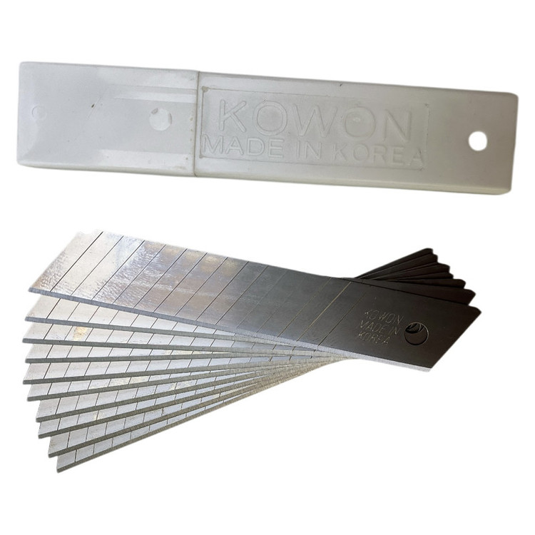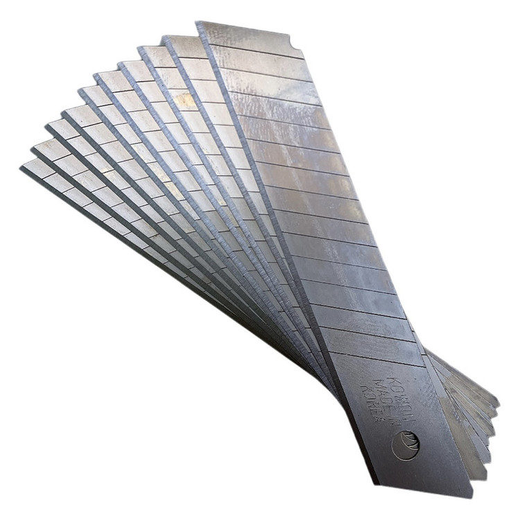 این تیغ سایز بزرگ است و مخصوص کاتر های بزرگ می باشد. دارای جعبه پلاستیکی سالم و روی جعبه و تک تک تیغ ها MADE IN KOREA حک شده است. تعداد 14 خط برش روی تیغ.