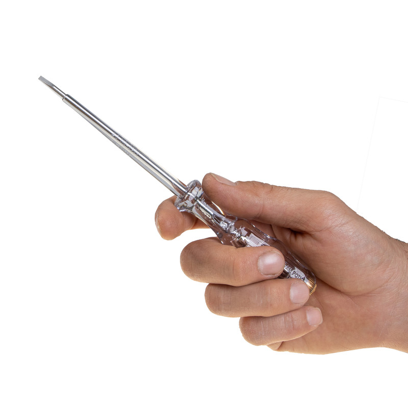 سایر توضیحات : طول تیغه: 100 میلی متر طول دسته: 95 میلی متر قطر میله: 3.5 میلی متر ابعاد نوک فازمتر: 0.6x3.5 میلی متر