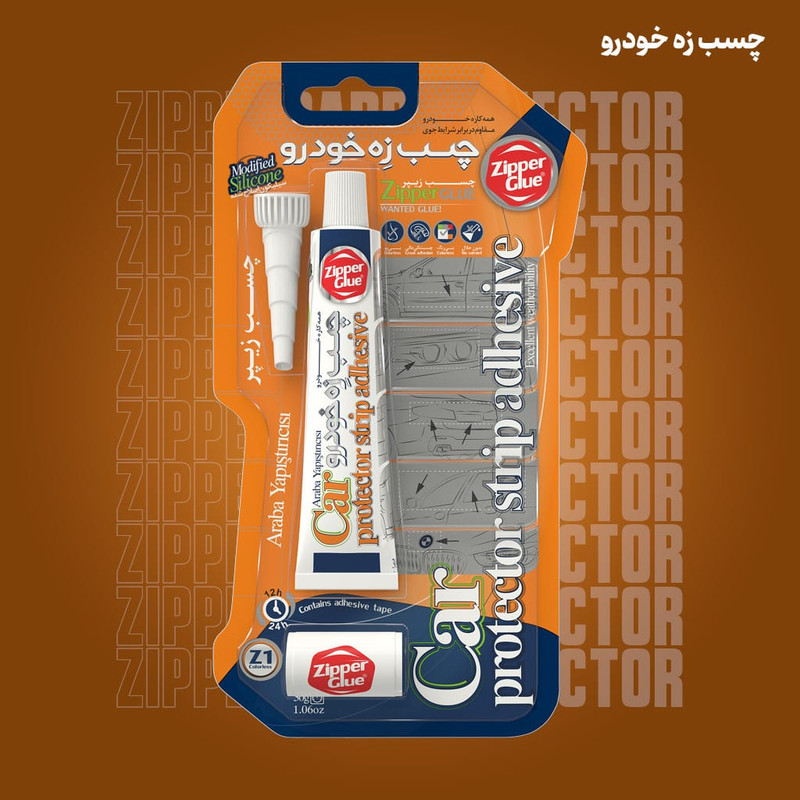 چسب زه خودروی زیپر بر پایه پلیمرهای سیلیکونی می باشد که در تماس با رطوبت هوا پخت می شود.چسب زه خودرو زیپر تحت عنوان چسب همه کاره هم شناخته می شود.از ویژگی های بارز این چسب می توان مقاومت عالی در برابر شرایط جوی مختلف ,حفظ کیفیت و ماندگاری بالا در طولانی مدت,صد در صد ضد آب,زمان خشک شدن 12 تا 24 ساعت نام برد. چسب زه خودرو زیپر مناسب جهت استفاده در قسمت های مختلف خودرو نظیر چسباندن زه خودرو,آینه های جانبی و داخل,شیشه ها ,چراغ های ترمز و راهنما ,انواع قطعات تزئینی و ... می باشد و همچنین آب بندی سرویس های بهداشتی و سینک ظرفشویی و درزگیری درب و پنجره,آب بندی قطعات صنعتی اشاره کرد.
