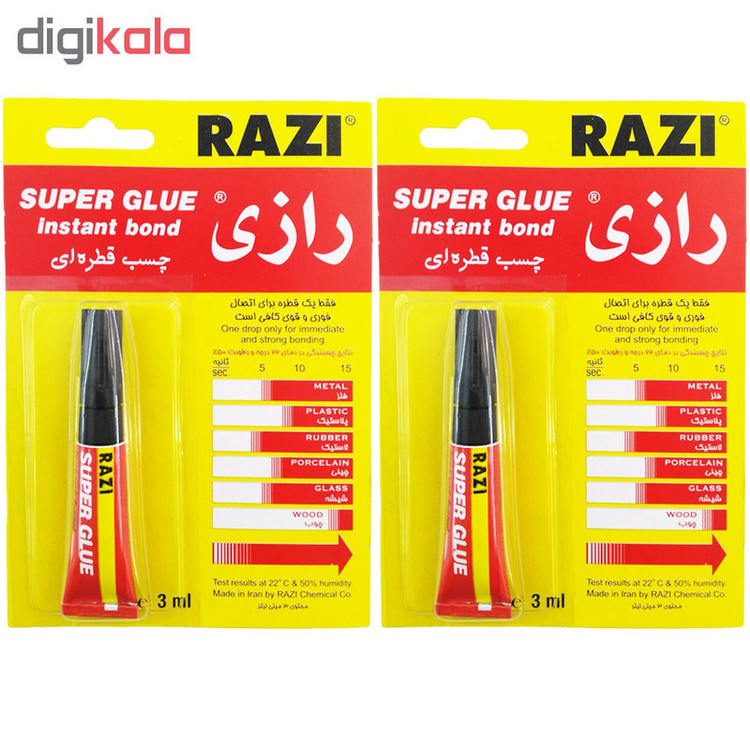 چسب قطره ای رازی مدل Super Glue حجم 3 میلی لیتر بسته 2 عددی