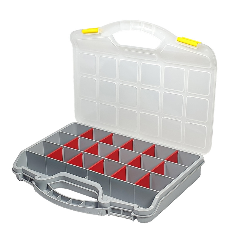سایر توضیحات : قابلیت تغییر تعداد بخش ها با خارج یا وارد کردن صفحات پلاستیکی بصورت کشویی دارای دو گیره بسیار مستحکم برای بستن جعبه بدون هیچ گونه لقی بدنه بسیار محکم