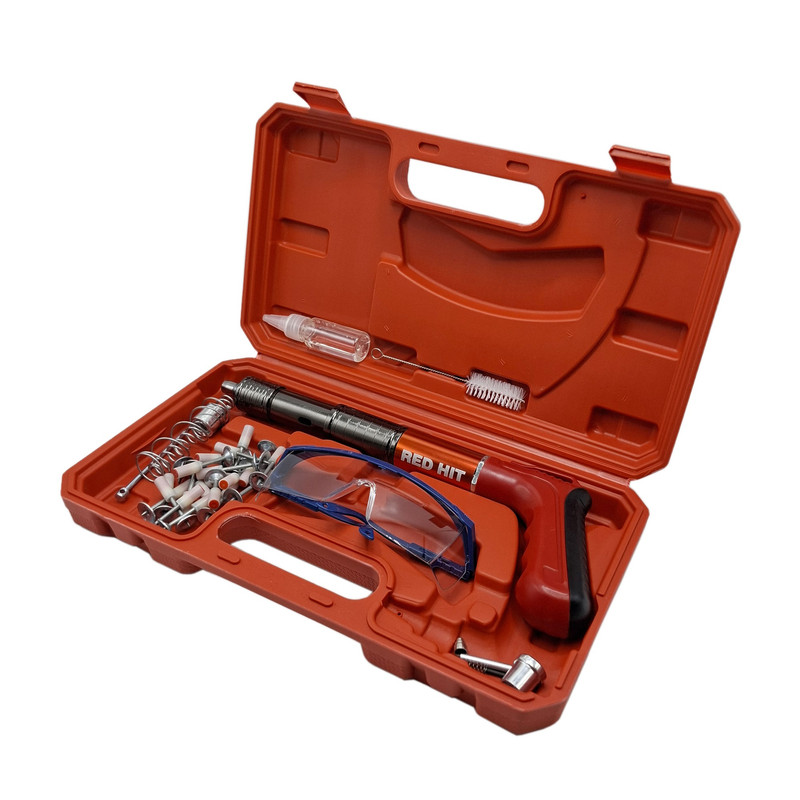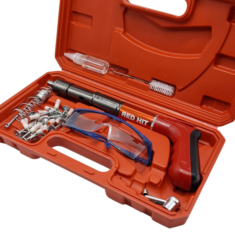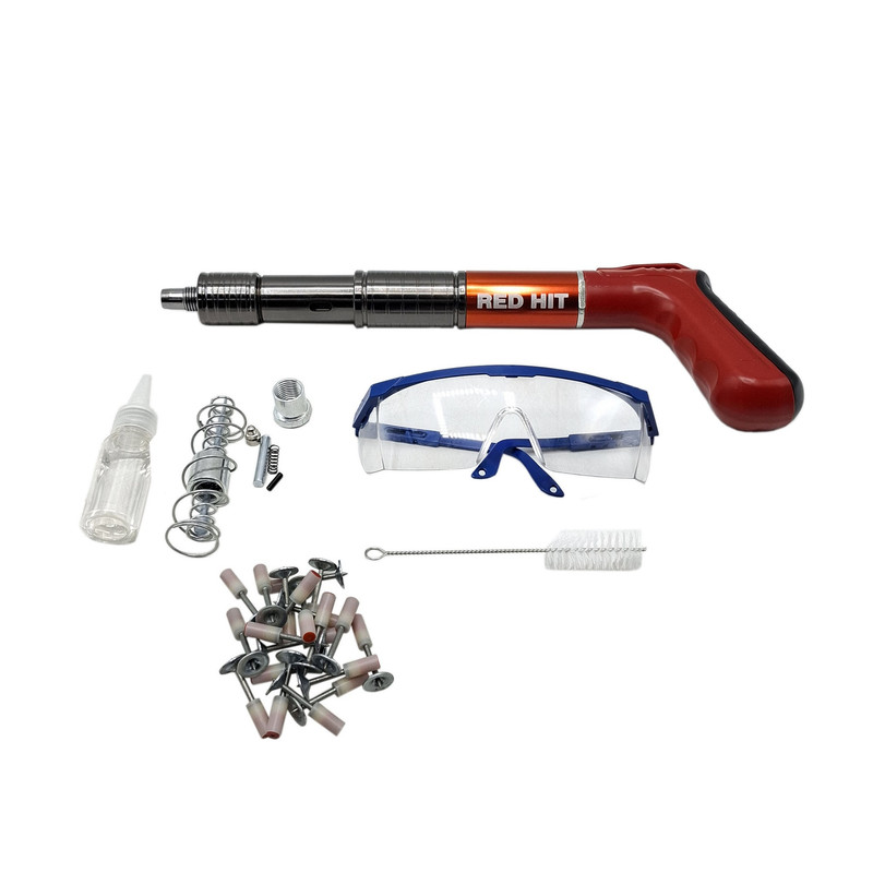 مشخصات میخکوب بتن و آهن (میخ با چاشنی انفجاری) امکان استفاده در بتن، پلاستیک، ورق های نازک فلزی، چوب و ... را دارد xقابلیت استفاده میخ تا 5 سانتیمتر را دارد xکارکرد ساده و قوی دارد xبدون نیاز به چاشنی انفجاری جداگانه می باشد xبسیار سبک، کم حجم وقابل حمل می باشد xمحصولی جدید و با تکنولوژی به روز جهت جایگزینی برای میخکوب های والتی، کامرکس و ... می باشد xبدون نیاز به چاشنی انفجاری می باشد xدارای کیف حمل، عینک، فرچه، فنر یدک .20 عدد میخ چاشنی. روغن می باشد تفنک میخکوب ابزاری است مشابه تفنگ بادی است. تفنگ میخکوب بتن برای اتصال پلیت ها و صفحات مختلف به بتن می باشد. البته مصارف دیگری از جمله اتصال انواع توری های مشبک و غیره به صفحه های بتنی و مصالح ساختمانی را نیز دارد. این تفنگ ها به وسیله چاشنی میخ موجود در خان تفنگ را با شدت به سمت هدف شلیک کرده و واشری که بر روی میخ قرار دارد صفحه را بر روی بتن نگه می دارد. با قرار دادن چاشنی مخصوص در داخل دستگاه و قرار دادن میخ در محل تعیینشده، میتوانید از این ابزار استفاده کنید. چاشنیهایی که برای این محصول در نظر گرفتهاند در دو نوع و برای کوبیدن میخ در فلز یا بتن هستند. نوع میخی که برای این دستگاه مورد استفاده قرار میگیرد، از گونههای واشردار است. از این دستگاه در شغلهای مختلف که با چوب و فلز سروکار دارند، استفاده میکنند.