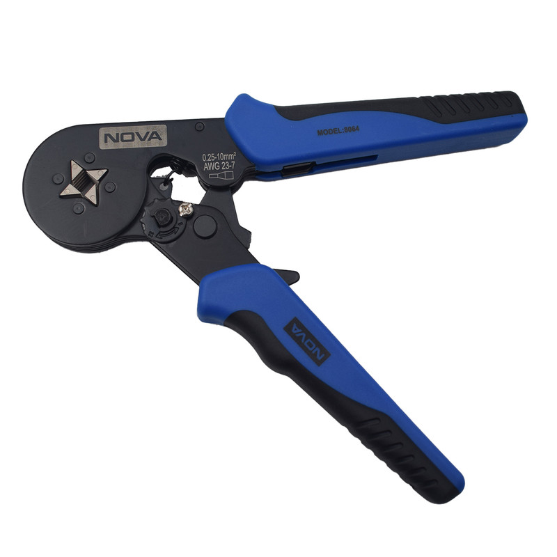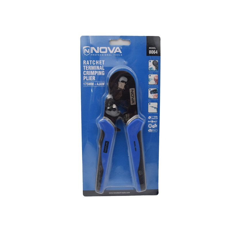 نووا یکی از بهترین شرکت ها در زمینه تولید ابزار می باشد این شرکت طی سالیانی که به تولید می پرداخته همچنان در این عرصه از پیشتازان می باشد .انبر پرس وایرشو چهار گوش نووا مدل 8064 از محصولات نووا بوده که مناسب برای برقکاران میباشد.این ابزار نوعی انبر وایرشو است که جهت پرس سرسیم در رنجهای 0.25 الی 10 میلی متر مربع روی سیم مورداستفاده قرار میگیرد. از ویژگیهای مهم محصول فوق قابلیت جغجغه ای بودن آن میباشد. فک آن فولادی بوده بوده و دسته آن از روکش پلاستیکی محکمی برخوردار است که به صورت ارگونومیک طراحی شده است. چهار پر بودن آن نیز موجب می شود تا سرعت انجام کار افزایش یابد . همچنین دستگاه فوق از وزن وابعاد مناسبی برخوردار بوده که کار با آن را آسان می نماید.