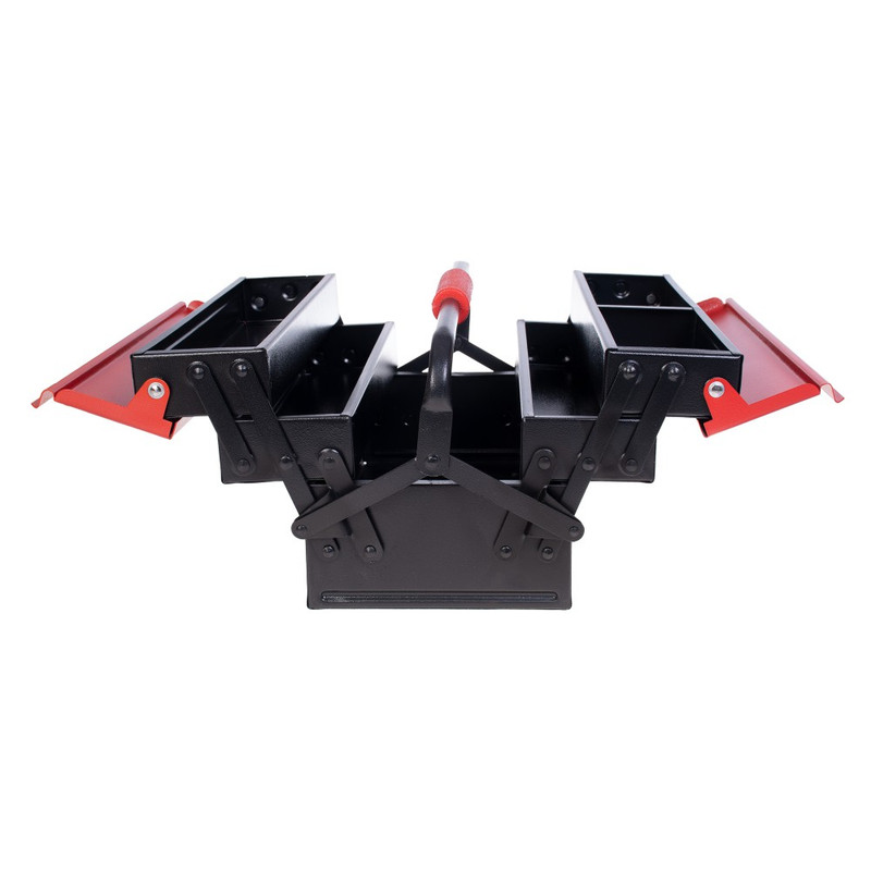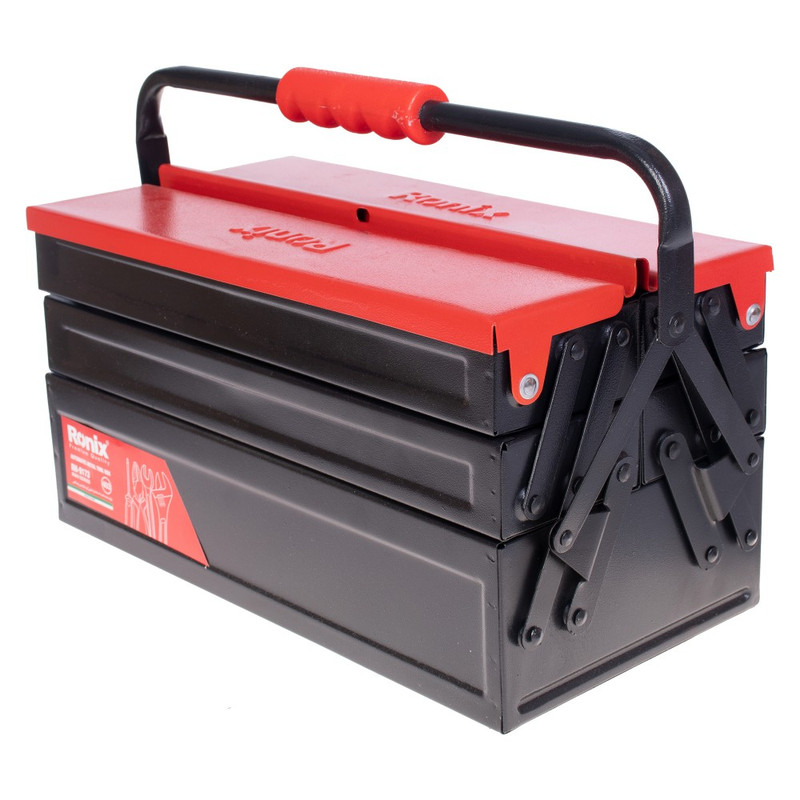 جعبه ابزار فلزی 3 طبقه 40 سانتی متری رونیکس به طور کامل از ورق فولاد ضد زنگ و مقاوم تولید شده است و اتصالات آن که به صورت پین شده هستند، در تمام قسمت های جعبه ابزار، به صورت با کیفیت و مرغوب ایجاد شده اند تا شما با خیال راحت بتوانید ابزارهای کوچک و متوسط خود از جمله انواع پیچ و مهره و آچار و انبر و انواع ابزار دستی مختلف را در درون آن جایگذاری کنید و آن ها را در خانه نگه دارید و یا به محل کار و فعالیت خود ببرید.