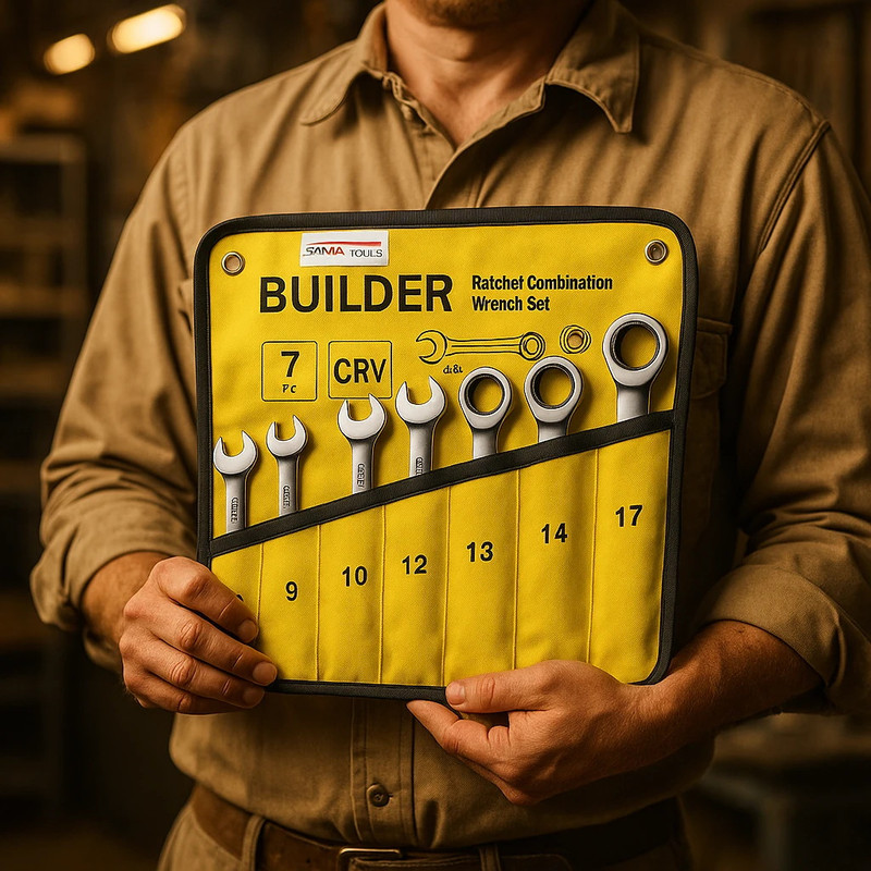 آچارهای یکسررینگ جغجغهای سری BUILDER از برند SAMA TOOLS، انتخابی مناسب برای کاربران حرفهای و صنعتی هستند که دقت، سرعت و دوام بالا برایشان اهمیت دارد. این مجموعه شامل ۷ عدد آچار با سایزهای 8، 9، 10، 12، 13، 14 و 17 میلیمتر بوده و تمامی ابزارها از فولاد مقاوم Chrome Vanadium Steel (CRV) ساخته شدهاند که استحکام بالا در برابر پیچش و ضربه را تضمین میکند.