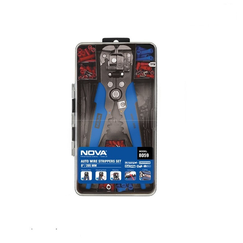 ست سیم لخت کن اتوماتیک چندکاره 8 اینچ مدل 8059 نووا، یکی از باکیفیت ترین ابزارهای موجود در بازار است که با بهرهگیری از جدیدترین تکنولوژی روز دنیا و بهترین متریال تولید شده و برای کاربران حرفهای و خانگی بهترین گزینه محسوب میشود. این ابزار به صورت اتوماتیک عمل کرده و نیازی به هیچگونه تنظیمات دستی ندارد، که این ویژگی باعث افزایش سرعت و دقت در انجام کارها شده است. تیغههای بسیار مقاوم این سیم لخت کن از جنس فولاد SK5 ساخته شدهاند. همچنین، این ابزار دارای روکش رنگ پودری است که به مقاومت آن در برابر سایش و خوردگی کمک میکند و باعث افزایش عمر مفید ابزار می شود. این مجموعه حرفه ای شامل 200 عدد انواع ترمینال و پایههای عایق برش خورده و آماده است که به کاربران این امکان را میدهد که تمامی اتصالات مورد نیاز را به سرعت و بدون نیاز به ابزارهای اضافی انجام دهند.