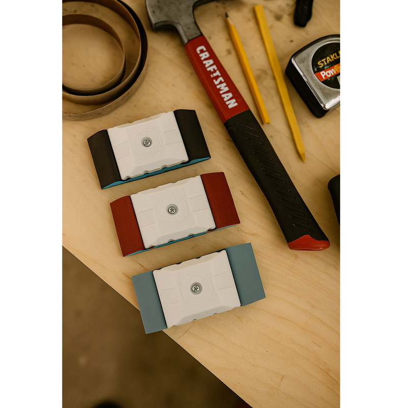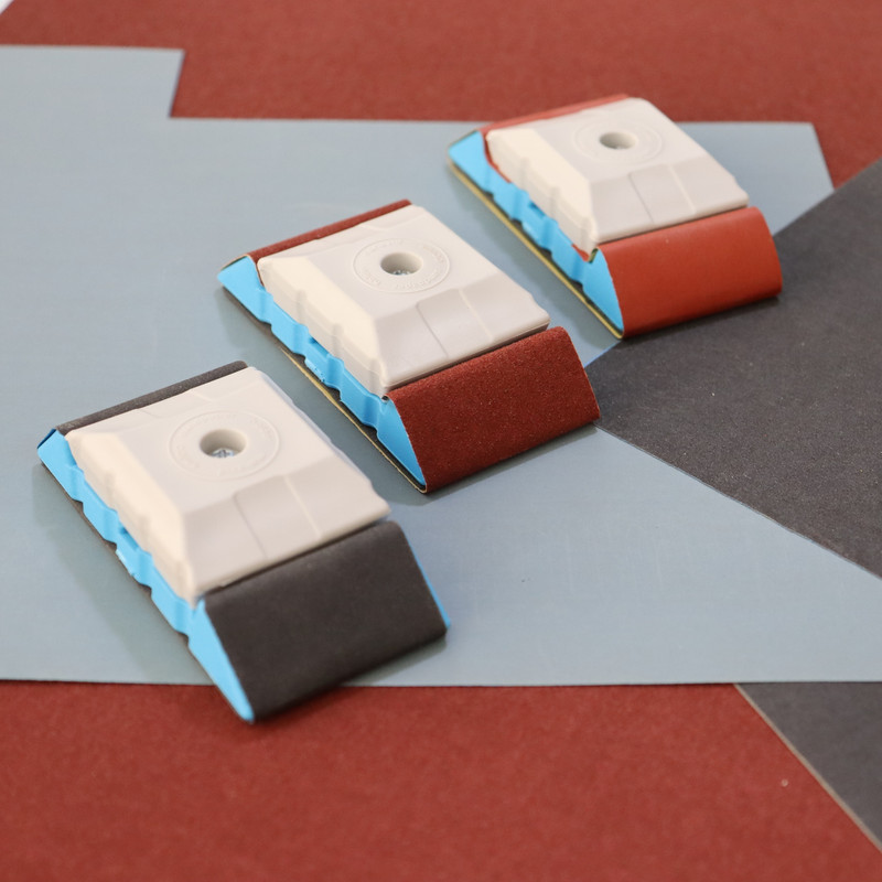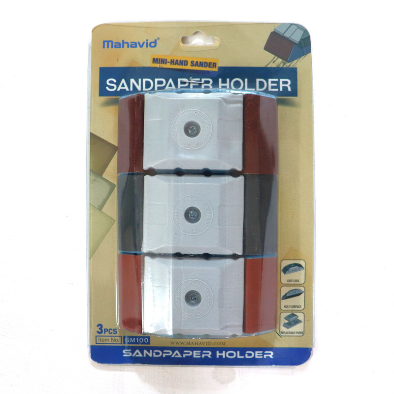 ست سه عددی نگهدارنده سمباده مدل SM 100 با سه ورقه ضخیم، متوسط و نرم جهت انجام سمباده، صاف کردن، حذف رنگ، آمادهسازی سطوح مختلف برای رنگآمیزی یا وارنیش.