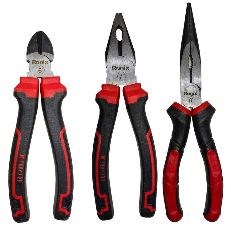 مجموعه 3 عددی انبردست سایز 7 کد RH-1167 رونیکس و دم باریک ;کد RH-1358سایز 8 رونیکس و سیم چین کد RH- 1266سایز 6 اینچ رونیکس