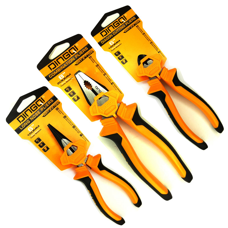 مجموعه 3 عددی انبر دینگشی در سایز های انبردست 8 اینچ و دمباریک 6 اینچ و سیم چین 6 اینچ از کیفیت بی نظیری برخوردار بوده و مقاومت عالی در برابر فشار دارد که میتوان باخیال راحت استفاده نمود از انجایی که این انبر ها کیفیت عالی دارد میتوان برای مصارف صنعتی و خانگی استفاده کرد این انبرها ساخته شده از کروم وانادیوم بوده و از مواد اولیه مرطوب و درجه یک ساخته شده است