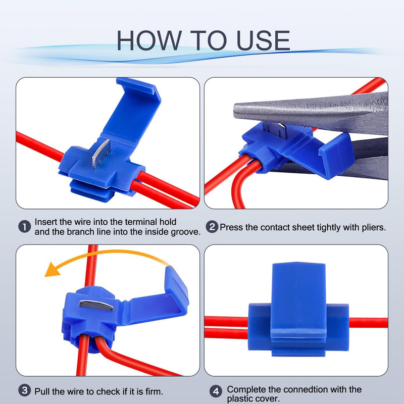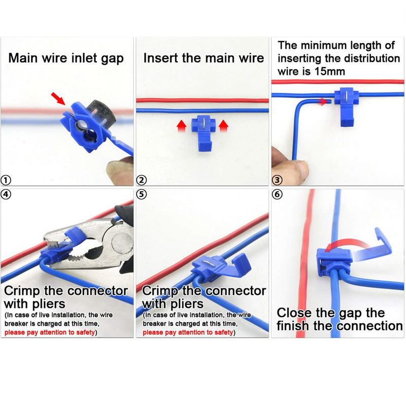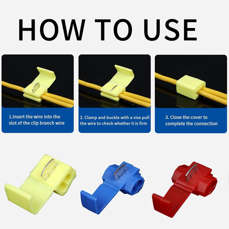 کانکتور هاي انشعابي جهت گرفتن انشعاب از سيم اصلي به کار مي رود. اين کانکتور، حاوي دو حفره جهت ورود دو سيم مي باشد. يکي از حفره ها از دو طرف کاملا باز و حفره دوم از یک سمت باز و از سمت ديگر بسته است. جهت استفاده ، سيم اصلي را وارد حفره اي که از دو طرف باز است کرده، سپس سيم دوم (انشعاب) را وارد حفره دیگر نموده ، به نحوي که سيم تا انتهاي حفره وارد شود و به بن بست حفره برسد. سپس، هادي کانکتور را به وسيله ابزارانبر دست يا ابزار پرس سرسيم يا ابزار مشابه به داخل فشار مي دهيم تا هادي عايق دو سيم را زخم کرده و به هادي دو سيم متصل گردد. پرس هادي تا جايي ادامه مي يابد که همسطح بدنه کانکتور گردد و ديگر امکان حرکت دادن آن ميسر نباشد. در پايان، درپوش لولايي کانکتور بسته مي گردد. مزيت اصلي کانکتور انشعابي سريع، امکان انشعاب گيري از سيم اصلي بدون قطع کردن مدار و عدم استفاده از ابزار خاص جهت نصب مي باشد و با ابزار ساده اي مانند انبردست امکان بهره برداري از آن است. جهت گرفتن انشعاب هاي بيشتر از يک سيم، مي توان از چند کانکتور انشعابي در مسير سيم بهره برداري نمود. کانکتور هاي انشعابي سريع، در سه سايز عرضه مي گردند. این محصول شامل 15 عدد کانکتور قرمز برای سیم های تا مقطع 1.5 و 15 عدد کانکتور آبی برای سیم های تا مقطع 2.5 و 5 عدد کانکتور زرد برای سیم تا مقطع 6 میلی متر است