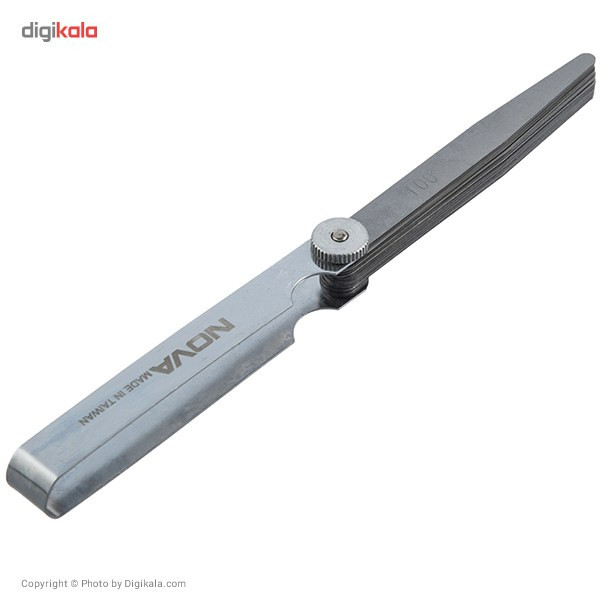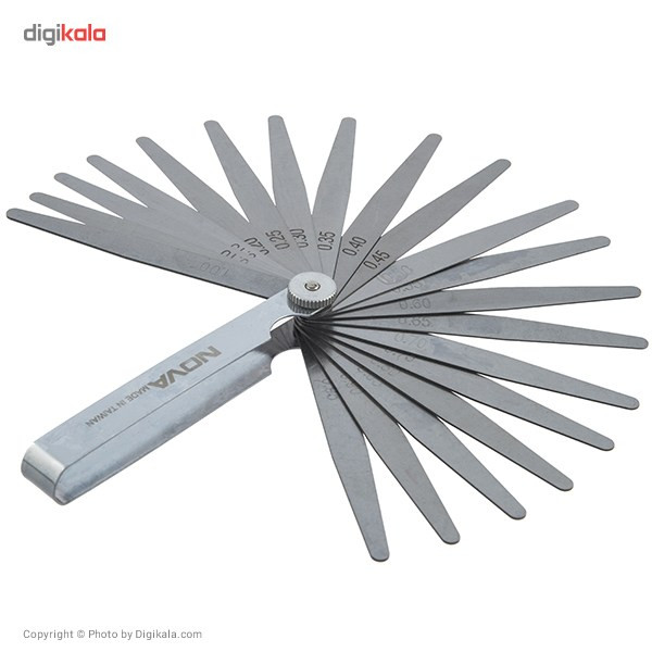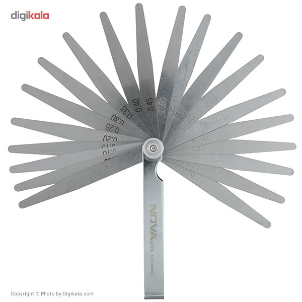 ابزاری که مشاهده میکنید آچار فیلر 20 تیغ است که توسط شرکت نووا Nova تولید میشود. به کمک این ابزار میتوانید میزان فیلر یا فاصلهی بین دو صفحه را تنظیم کنید. برای مثال در شمعهای خودرو بعد از مدتی استفاده فاصلهی بین دو الکترود مثبت و منفی شمع افزایش یا کاهش پیدا میکند. به کمک این آچار میتوان فاصلهی بین دو الکترود شمع که برای ایجاد عملکرد مطلوب نیاز به وجود فاصلهای استاندارد دارند را تنظیم کرد. این مجموعه شامل 20 تیغه با ضخامتهای متفاوت از 0.05 تا 1 میلیمتر است که برای تنظیم فواصل مختلف کاربرد دارد. جنس این تیغهها از فولاد است که برای افزایش دوام و جلوگیری از زنگزدگی شرکت سازنده از آبکاری کروم برای آن استفاده کرده است. این تیغهها ساختاری فنری دارند که موجب میشود در هنگام استفاده تیغهها شکل خود را از دست ندهند.