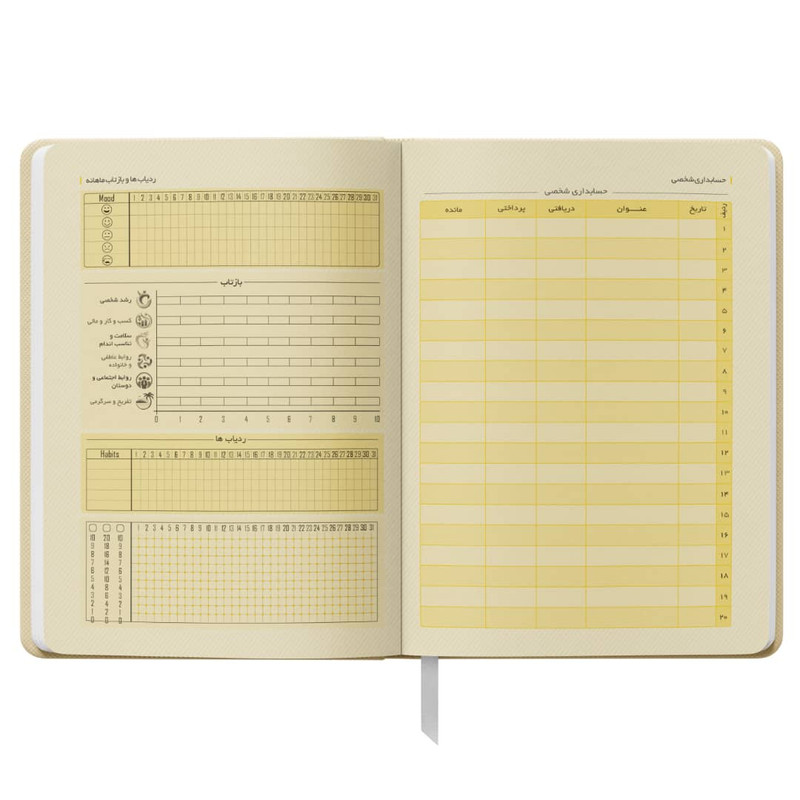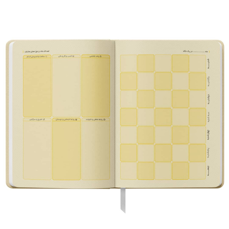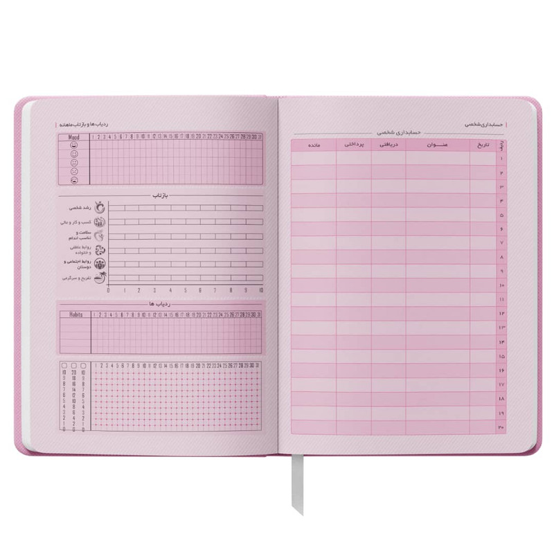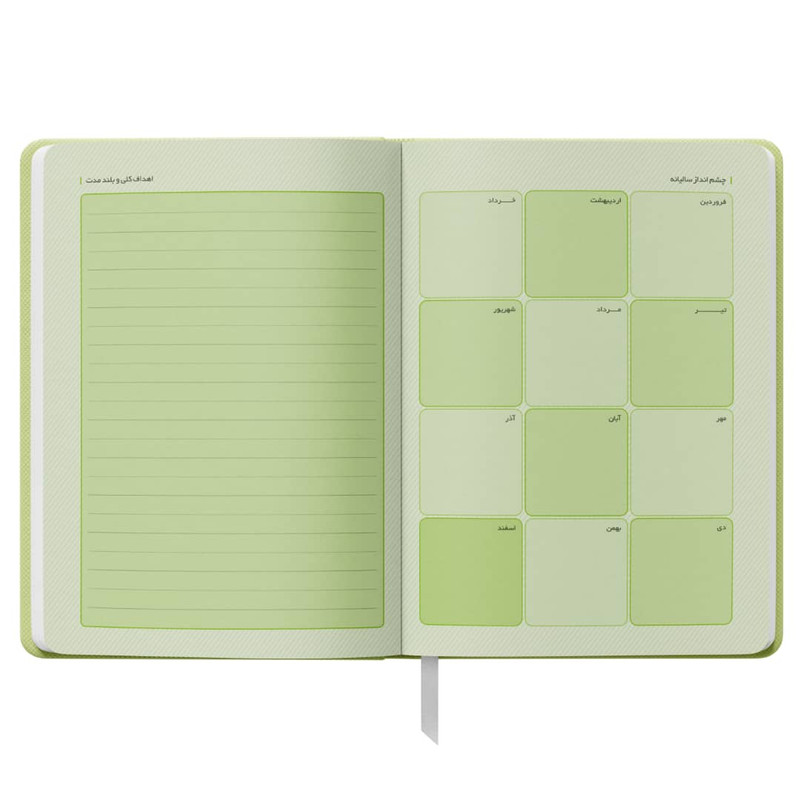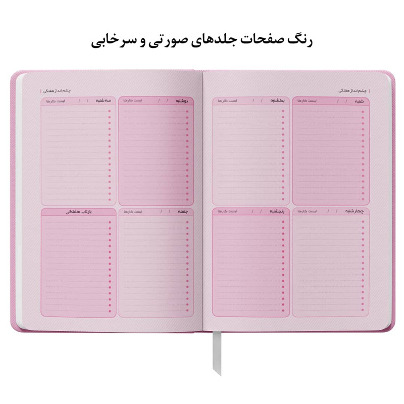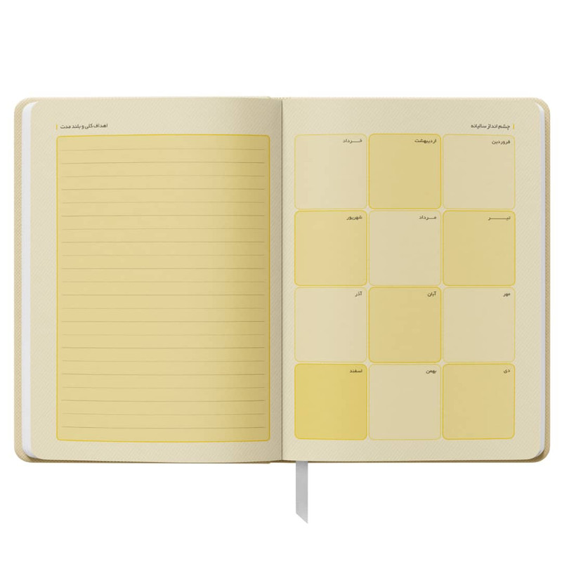 دفتر برنامهریزی یک ساله دایان با طراحی منحصر به فرد خود، انتخابی ایده آل برای علاقه مندان به نظم دهی و برنامه ریزی سالانه است. پلنر حاضر بر اساس آخرین متد های برنامه ریزی تهیه و تدوین گشته و ابزار بسیار مناسب برای برنامه ریزی های شماست . بدون تاریخ بودن دفتر پلنر این امکان را برای شما فراهم میکند که در هر زمان از سال استفاده از آن را شروع کنید . جلد سخت و باکیفیت این دفتر با رنگهای پاستلی ملایم مانند صورتی، آبی و سبز تا رنگهای گرم بهاری مانند سرخابی، نارنجی ، بنفش و....، فضایی آرامشبخش خلق میکند. نقوش طلاکوب روی جلد جلوهای لوکس و مدرن به آن میبخشد. این دفتر با 120 برگ کاغذ مرغوب عرضه میشود که رنگ صفحه ها هماهنگ با رنگ جلد طراحی شده است. صحافی دوختی بسیار خوب و لبه جلد و صفحات گرد همراه با ربان جداکننده حس یک دفتر پلنر حرفه ای را به خریدار منتقل میکند. ابعاد استاندارد 15x21 ( a5) و وزن مناسب آن، این دفتر را به همراهی همیشگی برای سازماندهی امور شخصی و حرفهای تبدیل میکند. این پلنر علاوه بر استفاده شخصی گزینه بسیار مناسب جهت هدیه به دیگران میباشد.
