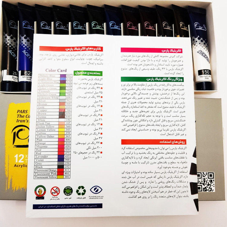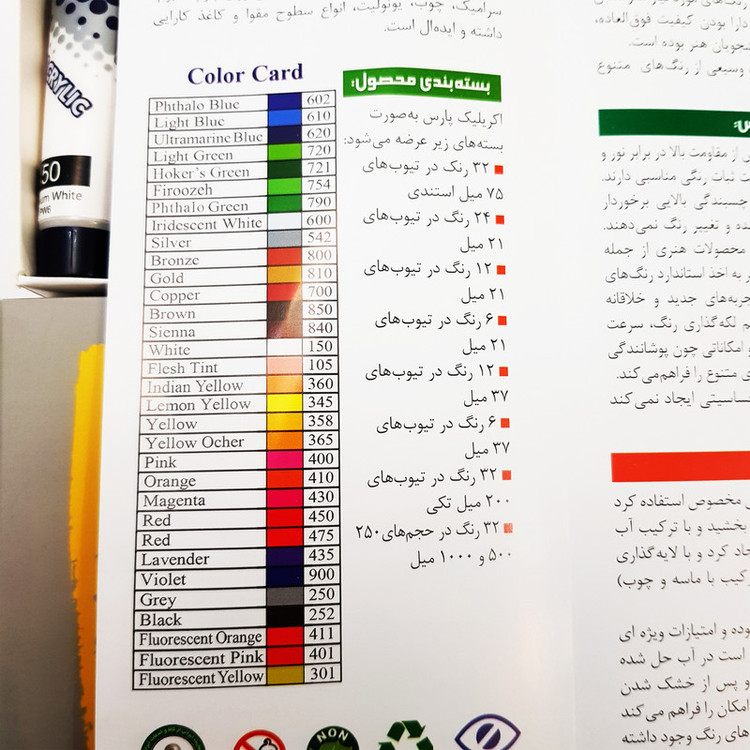 موارد استفاده: بوم نقاشی , شیشه , چوب , پلاستیک , کاغذ , کاشی و سرامیک , کریستال , مقوا , پارچه