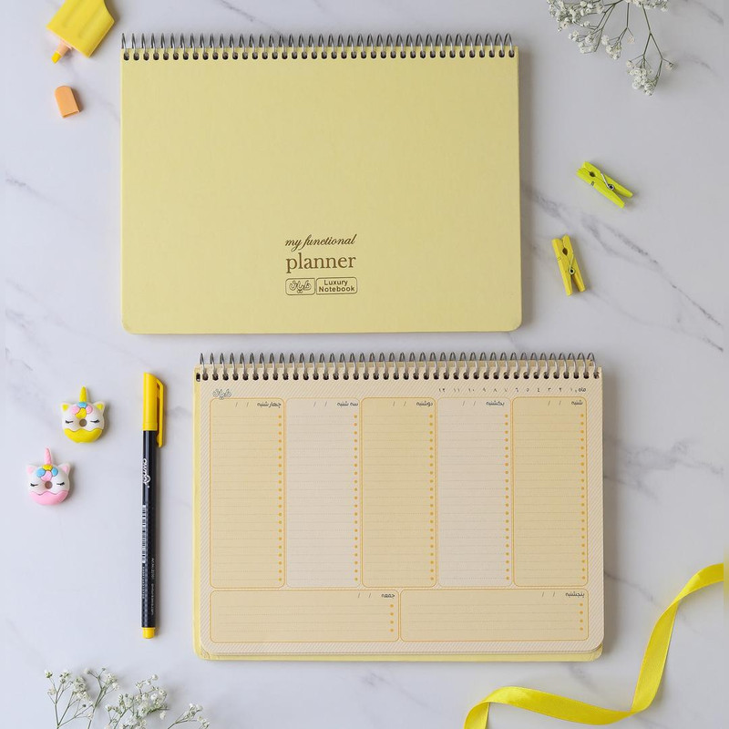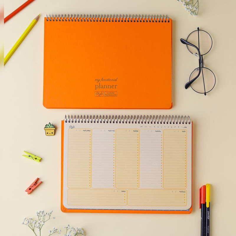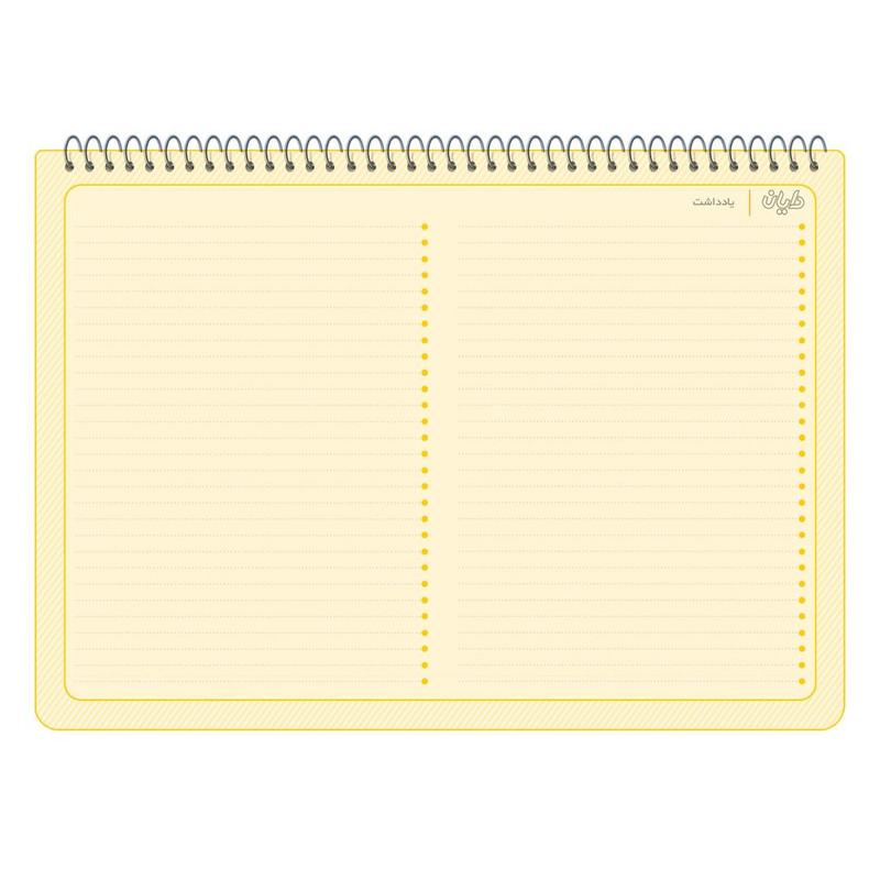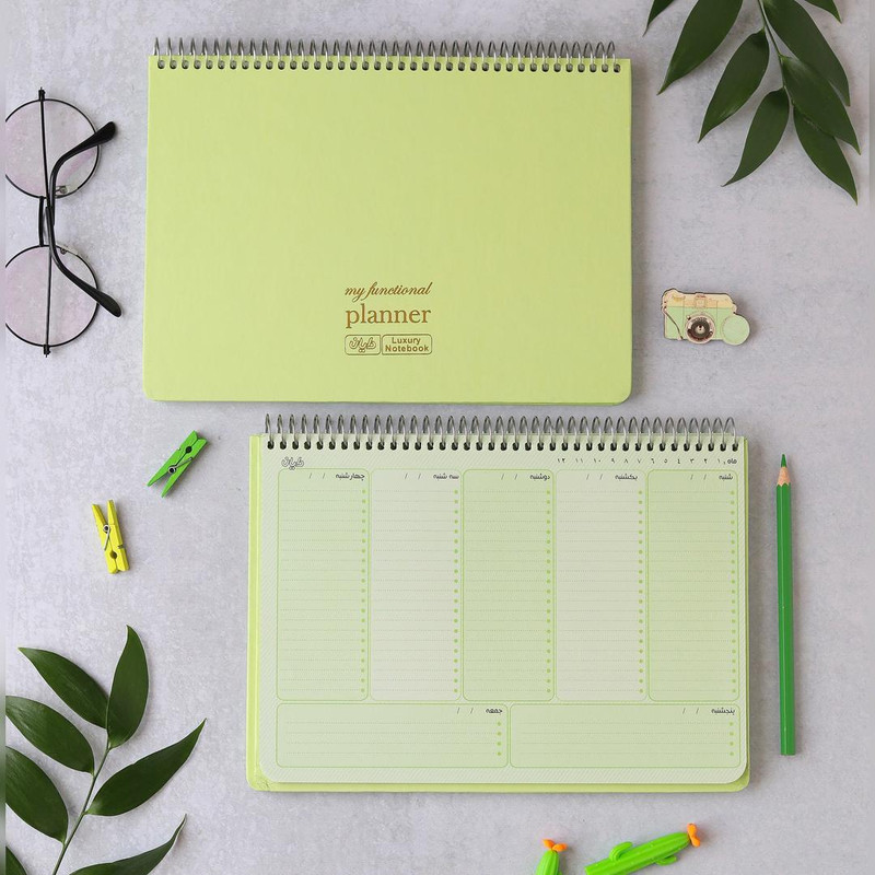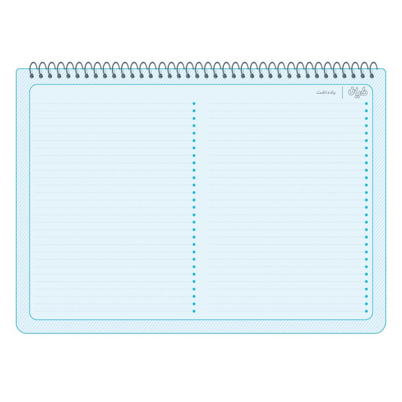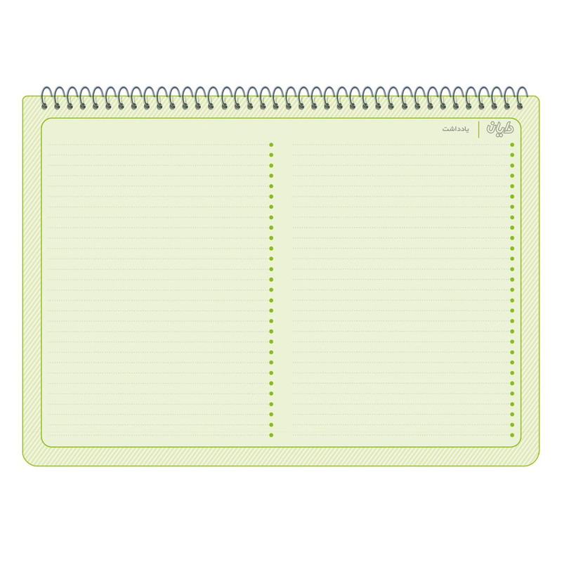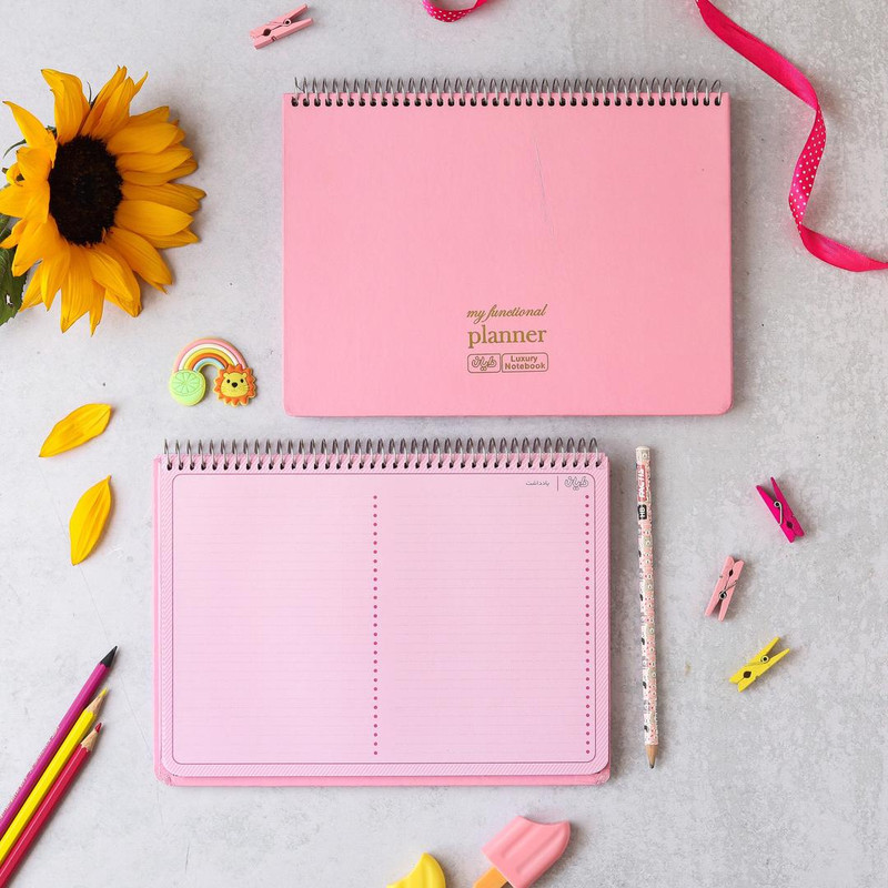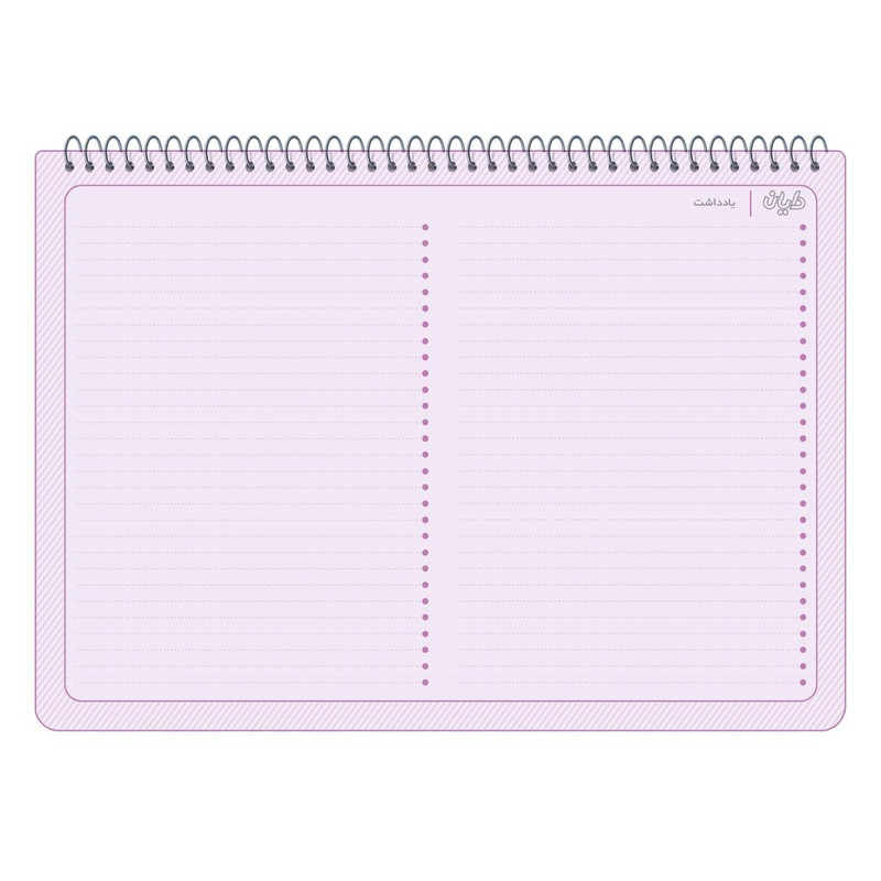این دفتر با ۶۰ برگ کاغذ مرغوب عرضه میشود که رنگ صفحه ها هماهنگ با رنگ جلد طراحی شده است. صحافی سیمی مقاوم امکان باز شدن ۱۸۰ درجه دفتر را بدون هیچگونه آسیب به صفحات فراهم میکند، ویژگی که هنگام نوشتن در صفحات میانی بسیار کاربردی است. ابعاد استاندارد (17*25) و وزن مناسب آن، این دفتر را به همراهی همیشگی برای سازماندهی امور شخصی و حرفهای تبدیل میکند.