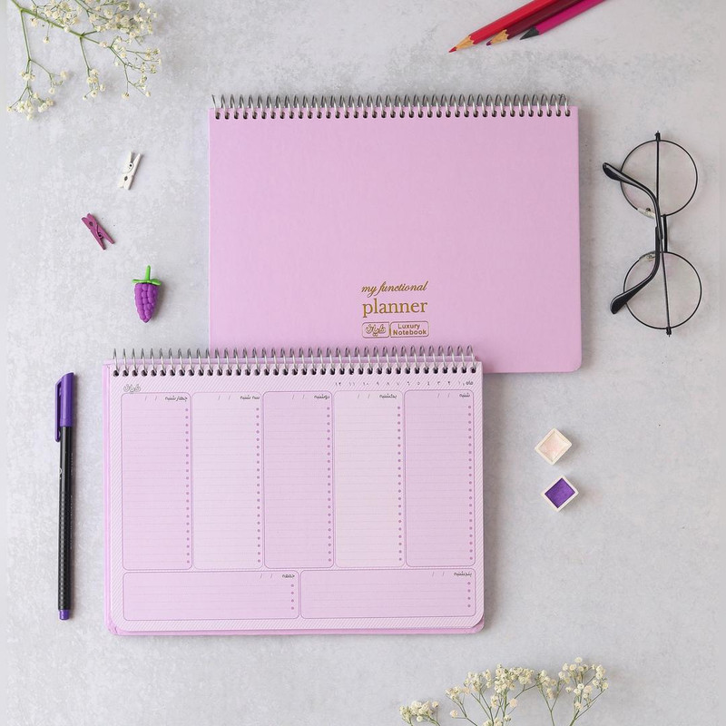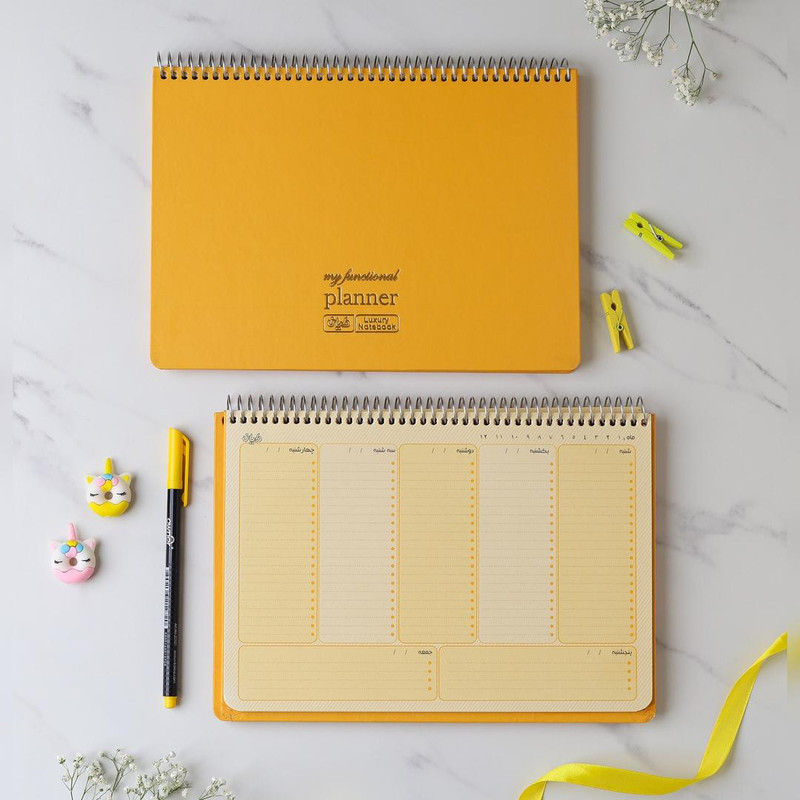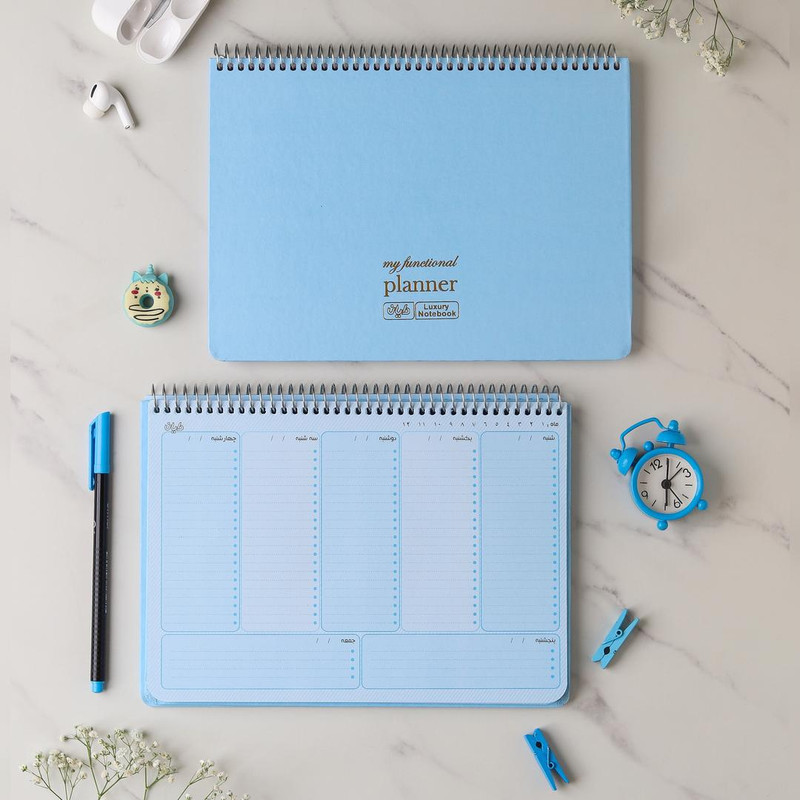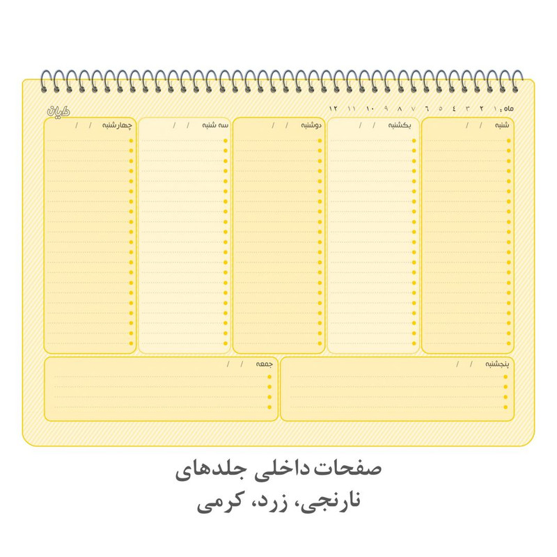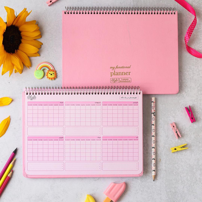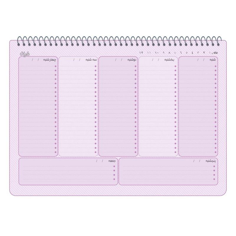 دفتر برنامهریزی هفتگی دایان با طراحی منحصر به فرد خود، انتخابی ایده آل برای علاقه مندان به نظم دهی هفتگی است. جلد سخت و باکیفیت این دفتر با رنگهای پاستلی ملایم مانند صورتی، آبی و سبز تا رنگهای گرم بهاری مانند بنفش،آبی کاربنی و....، فضایی آرامشبخش خلق میکند. نقوش طلاکوب روی جلد جلوهای لوکس و مدرن به آن میبخشد.