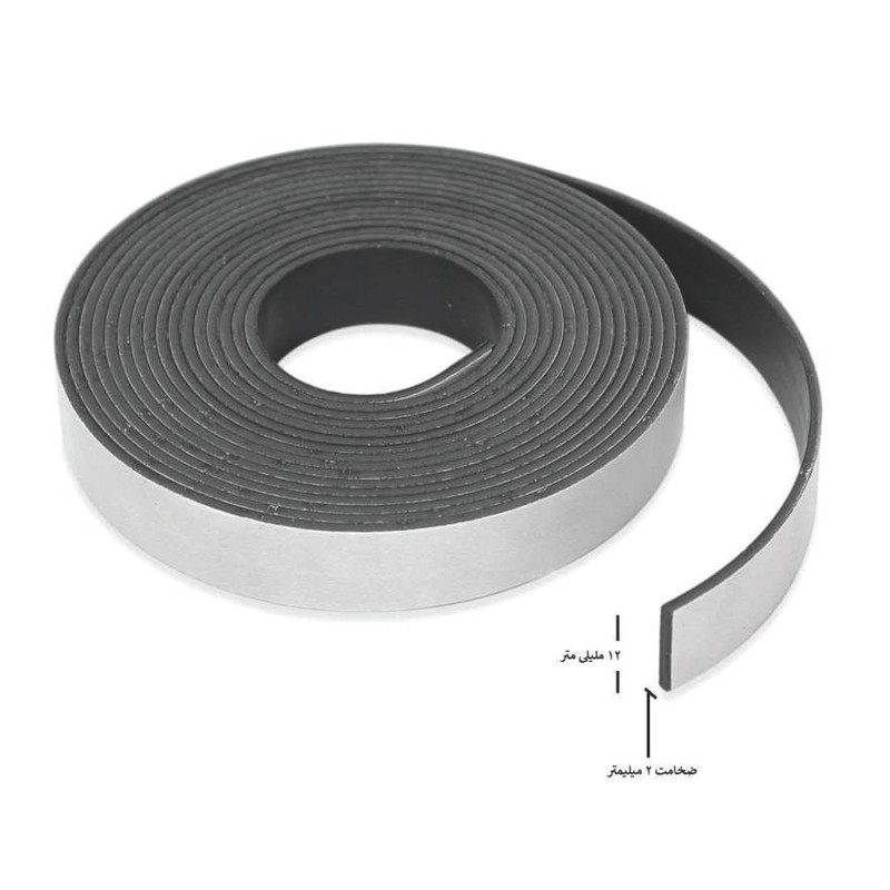 آهنربای نواری چسبدار عرض 12 میلی متر و ضخامت 2 میلی متر می باشد. یک طرف دارای نوار چسبناک سفید رنگ می باشد. برای افزایش قدرت چسبندگی بهتر از چسب های قطره های اضافه شود. بیشترین کاربرد این نوع برای ساخت کاردستی ، مسدود کردن درچه های کولر و... می باشد. قدرت ربایش این نوع آهنربا کم است و برای مصارف صنعتی و فنی قابل استفاده نیست.