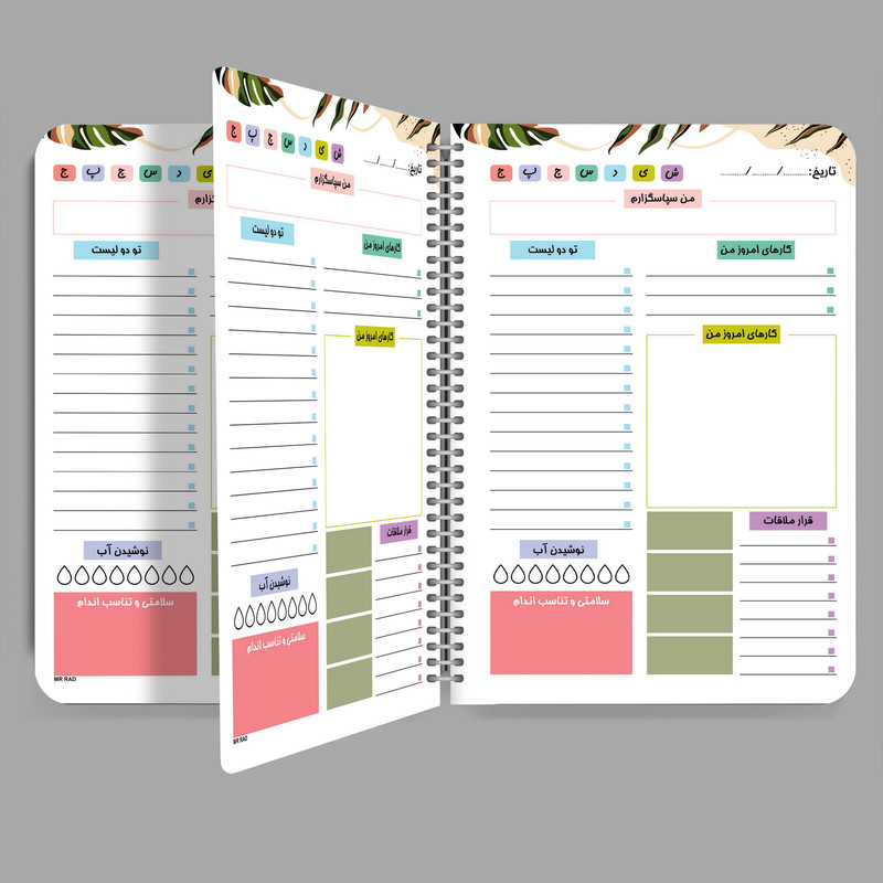 مستر راد با تیمی مجرب از متخصصین صنعت چاپ اقدام به تولید و چاپ دفتر برنامه ریزی نموده است. همه عاشقان لوازم تحریر، دفتر ، کتاب و همه کسانی که بنا به موقعیت تحصیل یا شغلشان با دفتر و نوشت افزار زیاد سرو کار دارند، برای خرید دفتر برنامه ریزی به خصوصیات آن توجه و پس از بررسی کامل خرید میکنند. خصوصیاتی مثل کیفیت کاغذ، جنس و دوام و طراحی جلد، طراحی صفحات، نوع صحافی ، تعداد صفحات، قطع و اندازه دفتر و… در انتخاب دفتر تأثیر گذار است. پلنر یا دفتر برنامه ریزی یک روش بسیار خوب برای نظم بخشیدن و هدفمند نمودن کارهایی است که در زندگی روزمره با آنها سر کار دارید، این کارها میتواند شامل خرید کردن، رژیم غذایی و عادات روزانه و یا ماهانه باشند. دفترچه برنامه ریزی مسترراد طرح برگ یکی از دفترهای محبوب بازار است و برای استفاده بعنوان دفتر برنامه ریزی برای همه سنین انتخاب مناسبی است. مزیت رقابتی پلنر مستر راد نسبت به سایر دفترها، علاوه بر وزن بالای کاغذ و کیفیت جلد که محافظ خوبی برای کاغذها است فنری بودن دفتر است که این امکان را به شما می دهد در صورت نیاز برگهای را از آن جدا کنید و به خوبی برگه ها را در کنار هم قرار میدهد. نام های دیگر دفتر های مستر راد: دفتر برنامه ریزی، پلنر، پلنر تحصیلی، دفتر برنامه ریزی روزانه، دفتر برنامه ریزی هفتگی، دفتر مشق، دفترچه یادداشت و ... می باشد.چرا دفتر پلنر مستر راد :چون دفتر پلنر مستر راد برای برنامه ریزی روزانه شما طراحی شده است